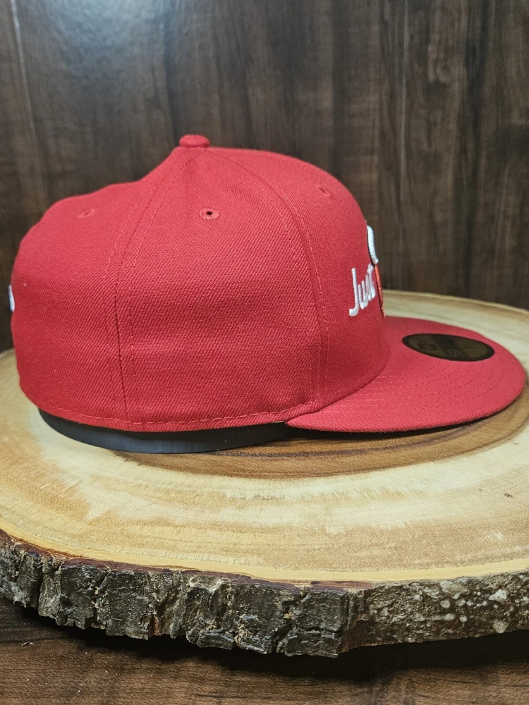 Elevate your headwear collection with the Miami Heat New Era Just Don 59Fifty Fitted Hat. This cap is a staple for any basketball fan, featuring the iconic colors and logo of the Miami Heat. The size 7 1/4 ensures a comfortable fit for most, with a classic brim that provides shade and style. Crafted for durability and fashion, this hat is a versatile accessory that complements both casual and sporty looks. Whether you're courtside at an NBA game or just out and about, this fitted cap is a subtle yet trendy nod to your favorite team. Add it to your wardrobe and tip your brim with confidence.