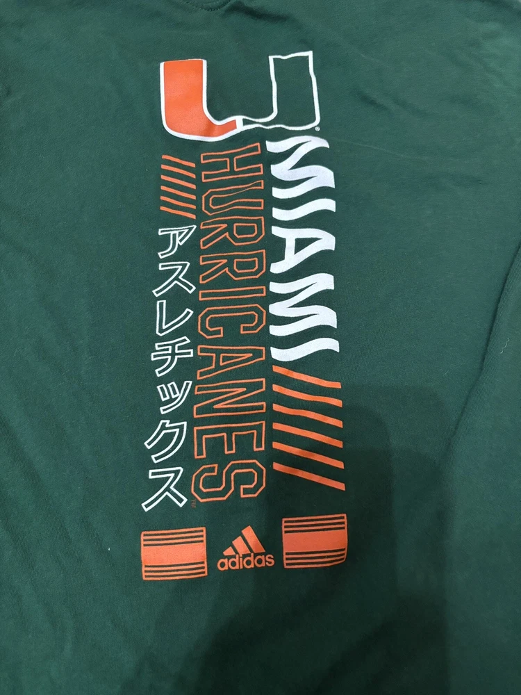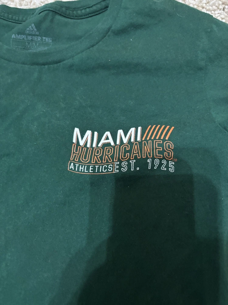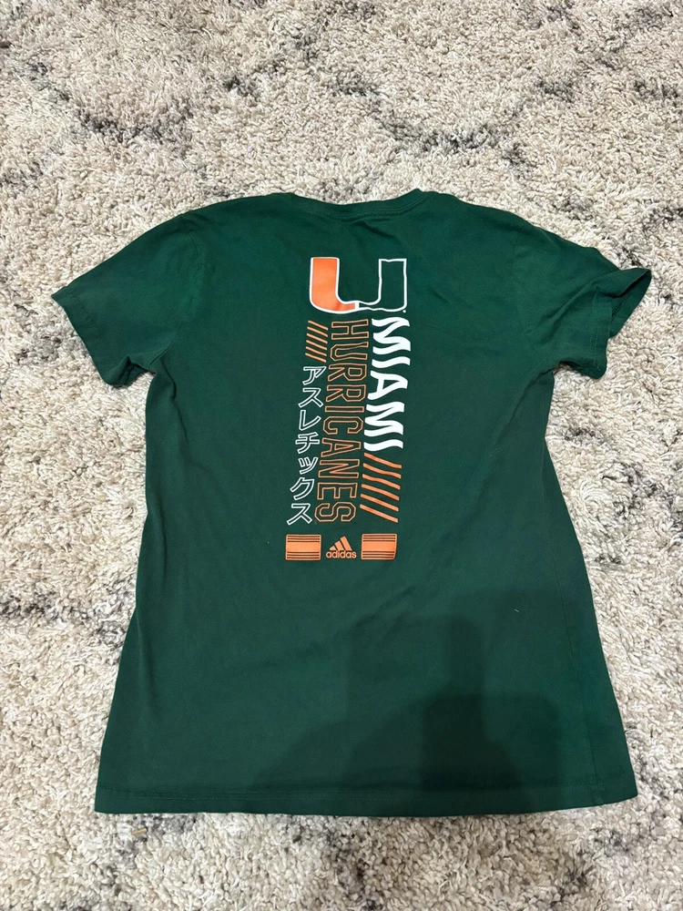 Product: Short Sleeve Shirt Gender: Women's gtin13: Does Not Apply Type: Short Sleeve Shirt UPC: Does Not Apply League: NCAA Color: Green Department: Women's Size: M Team: Miami Hurricanes Size Type: Regular Brand: adidas Sport: Ncaa Style: Athletic