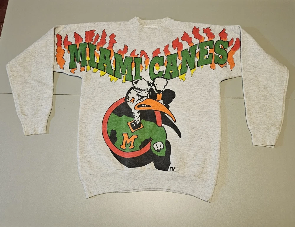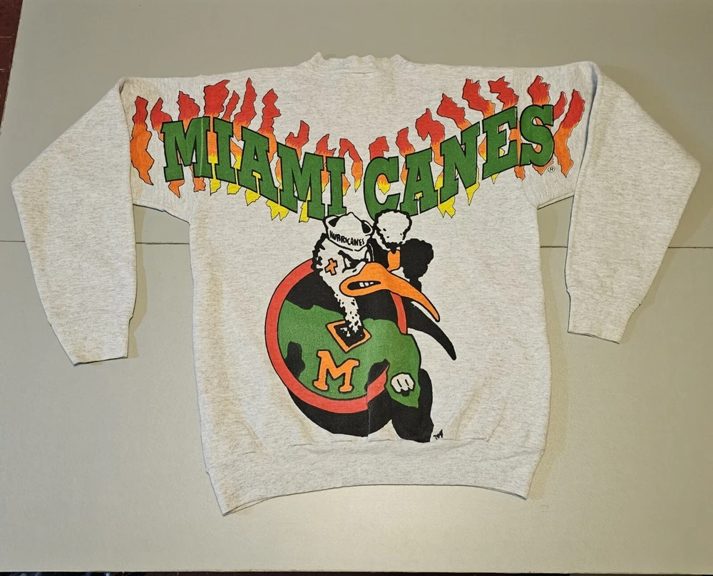 The Miami Hurricanes NCAA Play By Play Mens Size Large Double Sided Sweatshirt is a piece of fan apparel In very good pre owned condition