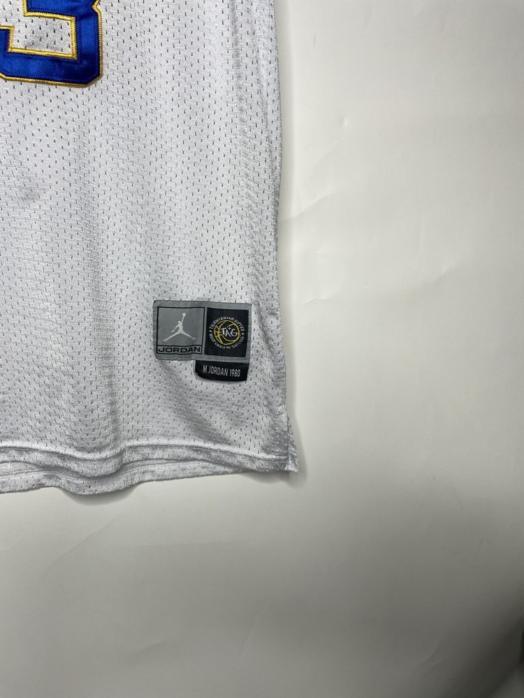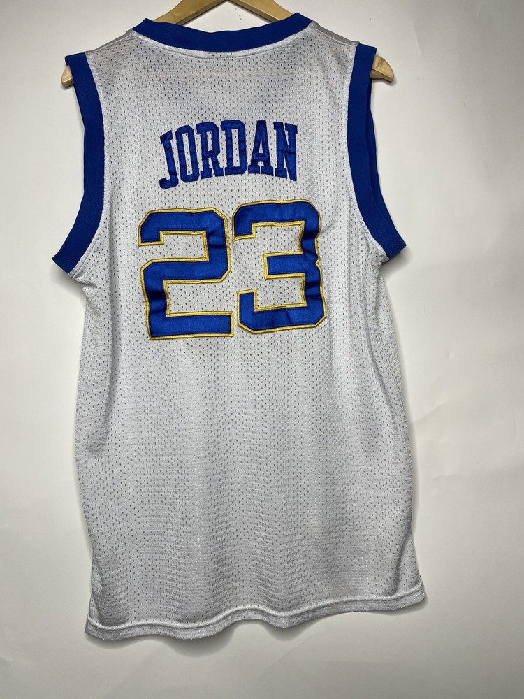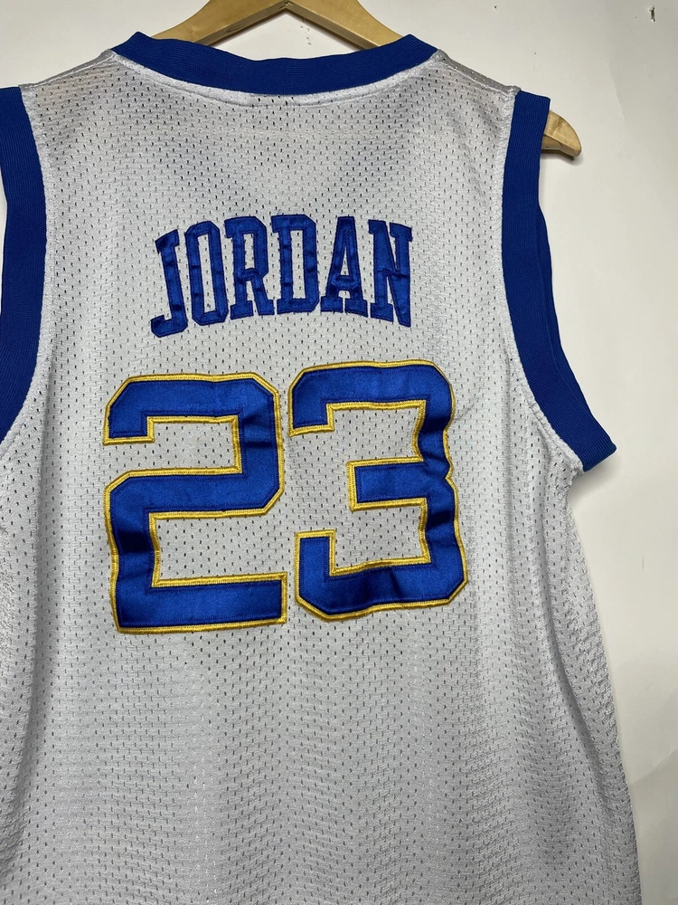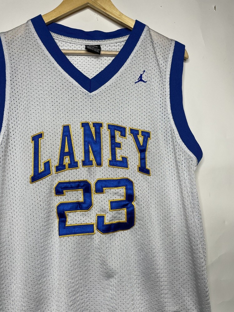 Show your love for Michael Jordan and the Chicago Bulls with this officially licensed Laney High School Basketball Jersey. The white jersey features the iconic Jordan Brand logo and is perfect for any unisex adult fan of basketball. Made for regular season games, this size L jersey is a must-have for any fan apparel collection. Whether you're cheering from the sidelines or watching from home, this jersey is perfect for showing your support for your favorite team and player.