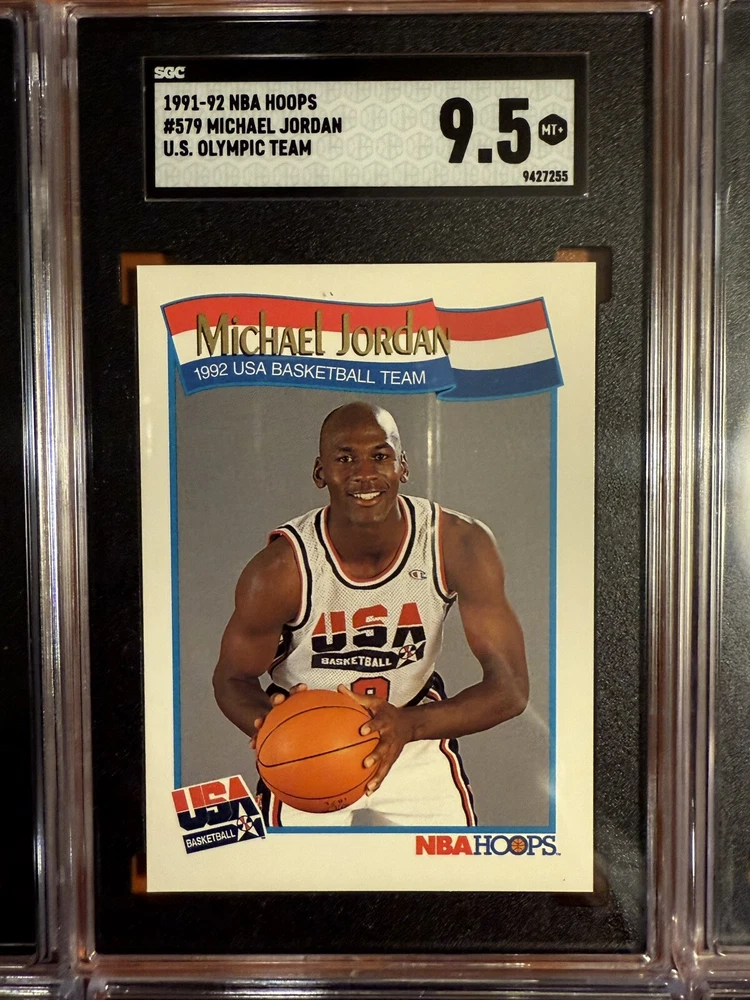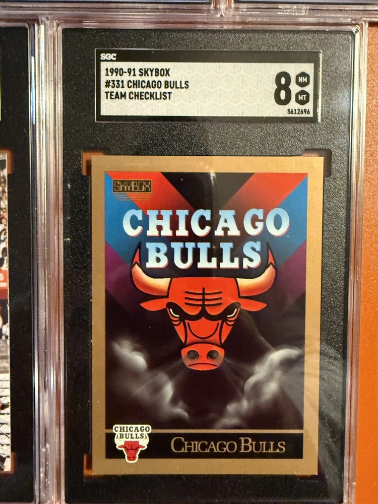 The product is a lot of eight rare SGC graded trading cards featuring Michael Jordan. These vintage basketball cards are made of card stock and are original licensed reprints. They are part of a limited edition collectors set, each serial numbered and representing the Chicago Bulls in the National Basketball Association (NBA). The cards are in English and were manufactured in the United States.