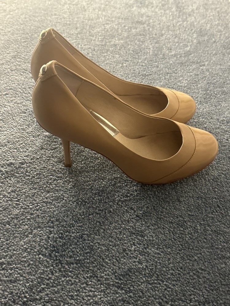 Elevate your wardrobe with these stunning Michael Kors nude beige patent leather high heels. Crafted with a glossy finish and a timeless design, these shoes exude elegance and sophistication, perfect for formal events