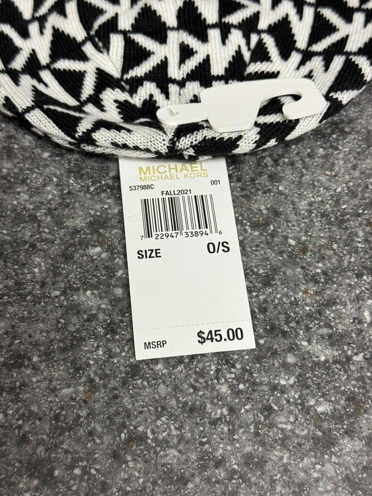 NWT Michael Kors Women’s Bordered Black White Cream MK Logo Cuff Beanie Knit Hat This michael kors beanie is brand new with tags! Never used! $45 Retail Will ship the next day via usps! Please let me know if you have any questions or offers!