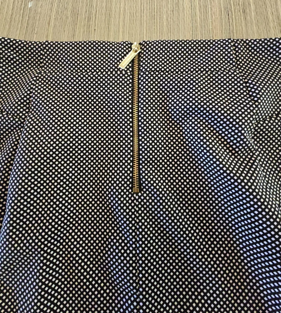 ❤️READ MEASUREMENTS FOR FIT ❤️ Michael Kors Knee-length Pencil Skirt Black and White Print Women's L Pre-owned EUC Very nice fully lined knee-length straight pencil skirt in black with all-over print of tiny white diamonds Exposed gold tone zipper in back with logo zipper pull Fully lined in black fabric Skirt: 95% Polyester 5% Elastane Lining: 100% Polyester Machine Washable Laying flat skirt measures 17" from side to side at waist, 21" from waistband to hem, and 20.5" across widest part ALL MEASUREMENTS ARE APPROXIMATE EXCELLENT Pre-owned Condition ❤️READ MEASUREMENTS FOR FIT ❤️