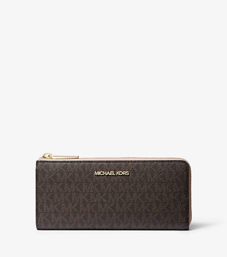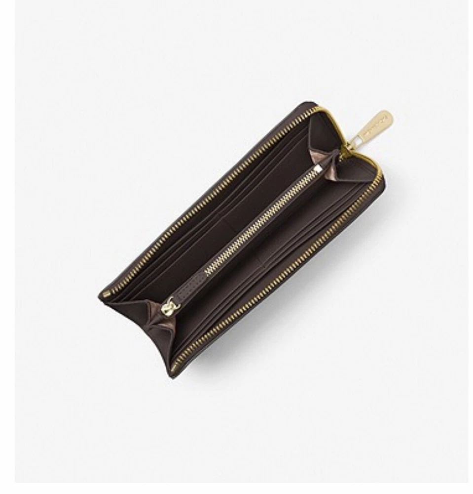 NWT! Jet Set Travel Large Logo Quarter-Zip Wallet - Brown Meet your new go-to: the Jet Set Travel wallet. Featuring our signature logo print, it opens to an array of pockets and card slots that will keep your necessities neatly organized. DETAILS • Wallet • Logo-print coated canvas • 89.4% coated canvas/9.6% polyester/1% polyurethane • Silver-tone hardware • 7.75”W X 3.75”H X 1”D • Interior details: 2 slip pockets, zip pocket, 8 card slots • Lining: 100% polyester • Zip fastening • Imported