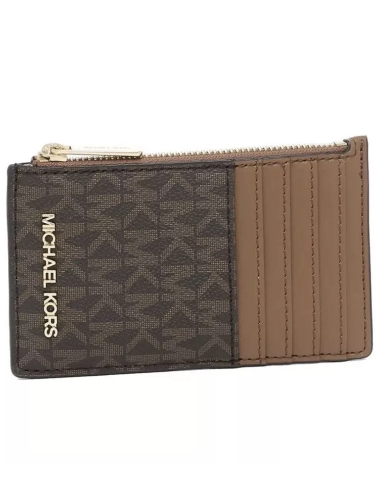Michael Kors Jet Set Travel Top Zip Card Case Wallet Coin Pouch Brown MK