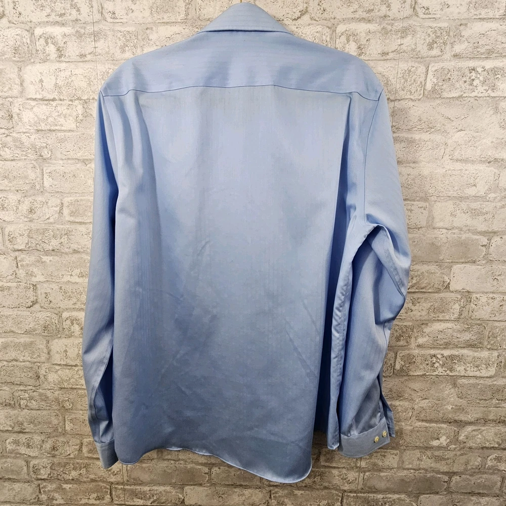 Michael Kors Mens Button Up Shirt Size 16 34/35 Blue Slim Fit. Excellent pre-owned condition. No rips, tears or stains. See photos for best representation. Measures: Length 30" Width 22" Sleeve 26"