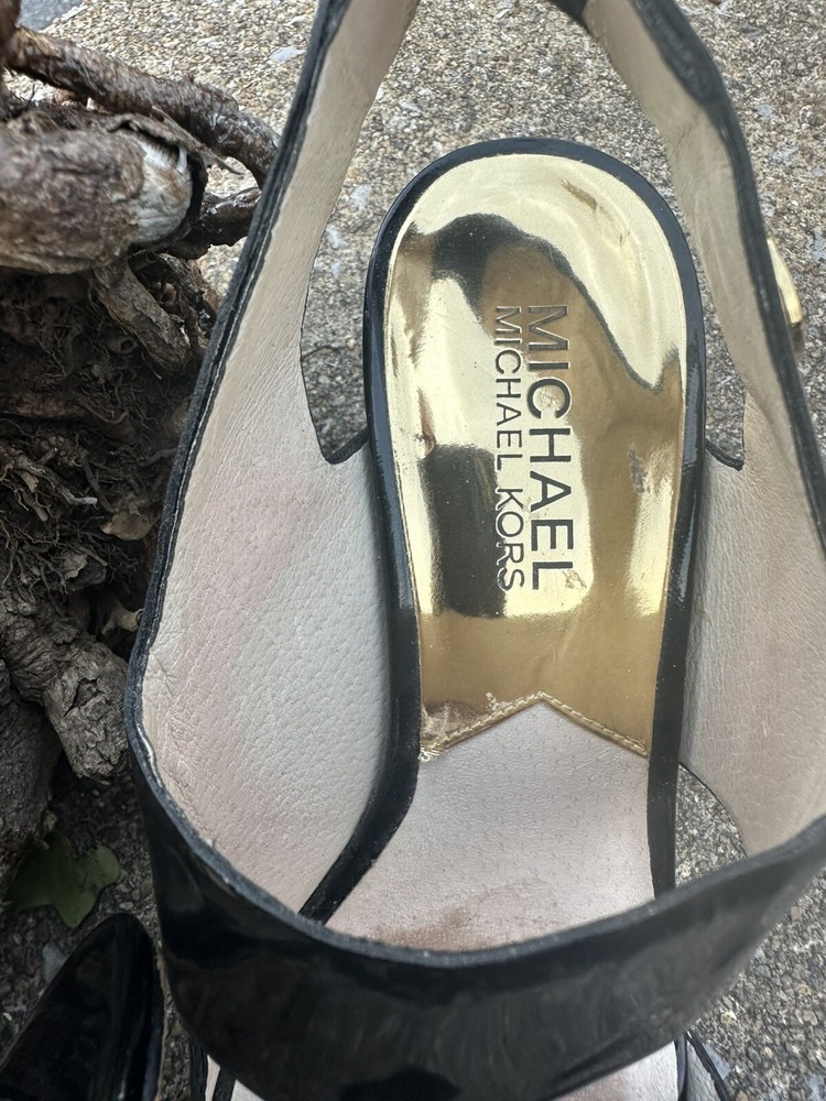 Elevate your style with these Michael Kors black pumps. Designed with an open toe and ankle strap, these heels are perfect for any occasion. The solid pattern and sleek leather upper material exude sophistication and class. These pumps are a size 6M, which is equivalent to a size 37 in EU and a size 7 in AU. The heel height is not specified, but rest assured, these pumps are sure to make you stand out. The brand name speaks for itself, so you can be confident in your purchase. These shoes are not personalized or customized in any way, so you can be sure to receive the exact product you ordered.