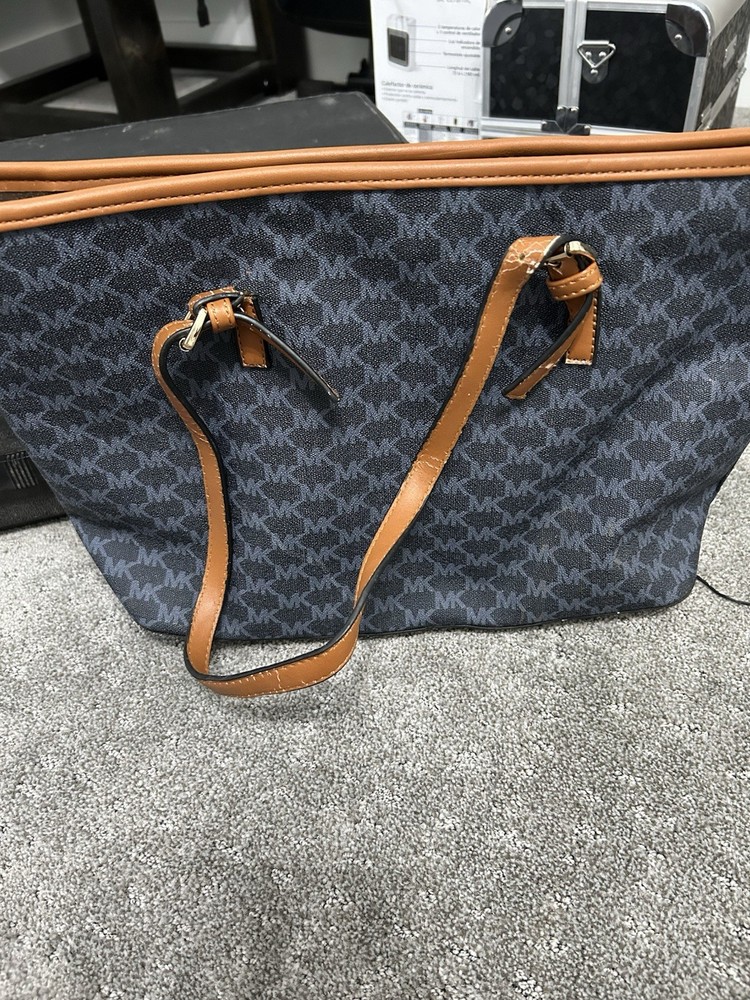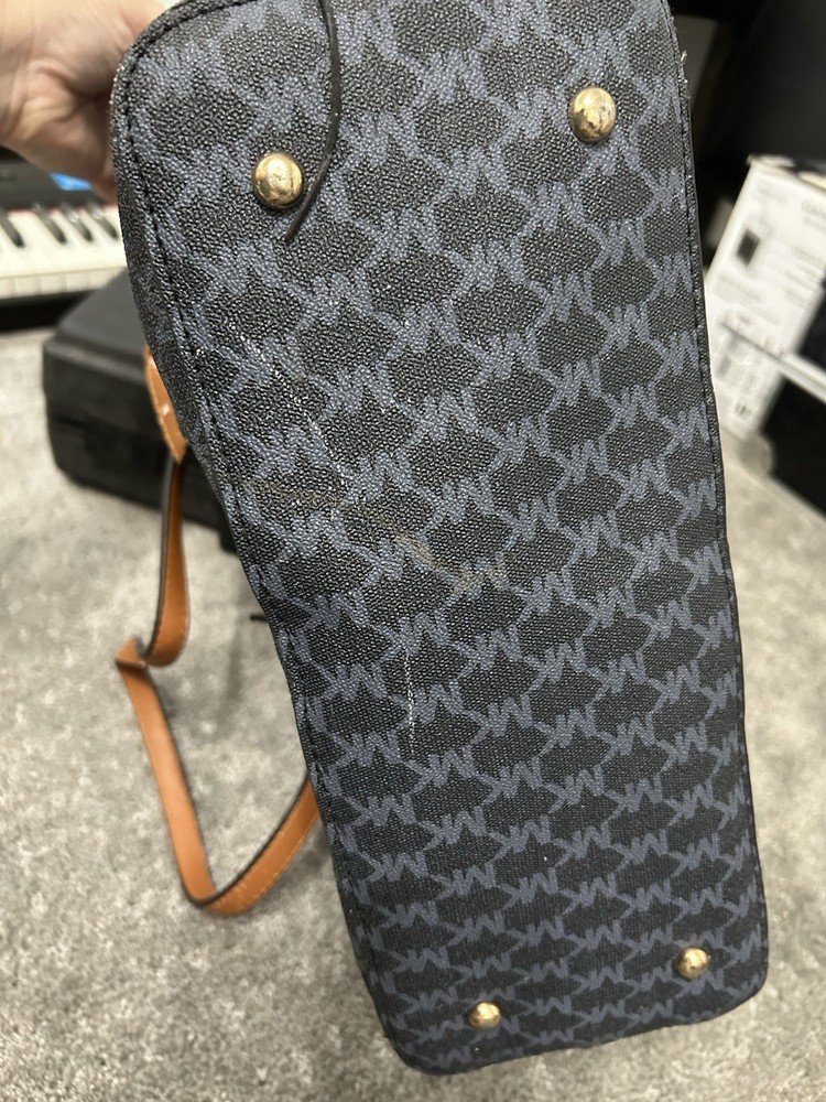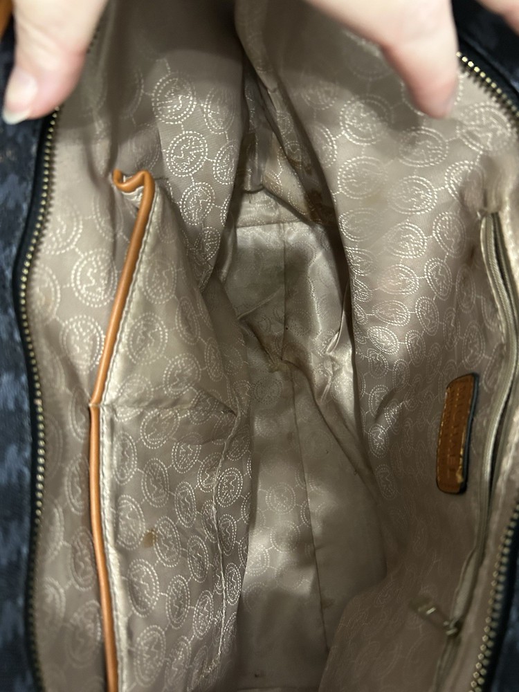Micheal Kors navy blue has some signs of visible wear as shown chafing on inside of strap and slight stain in the inside otherwise in good condition