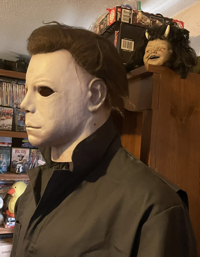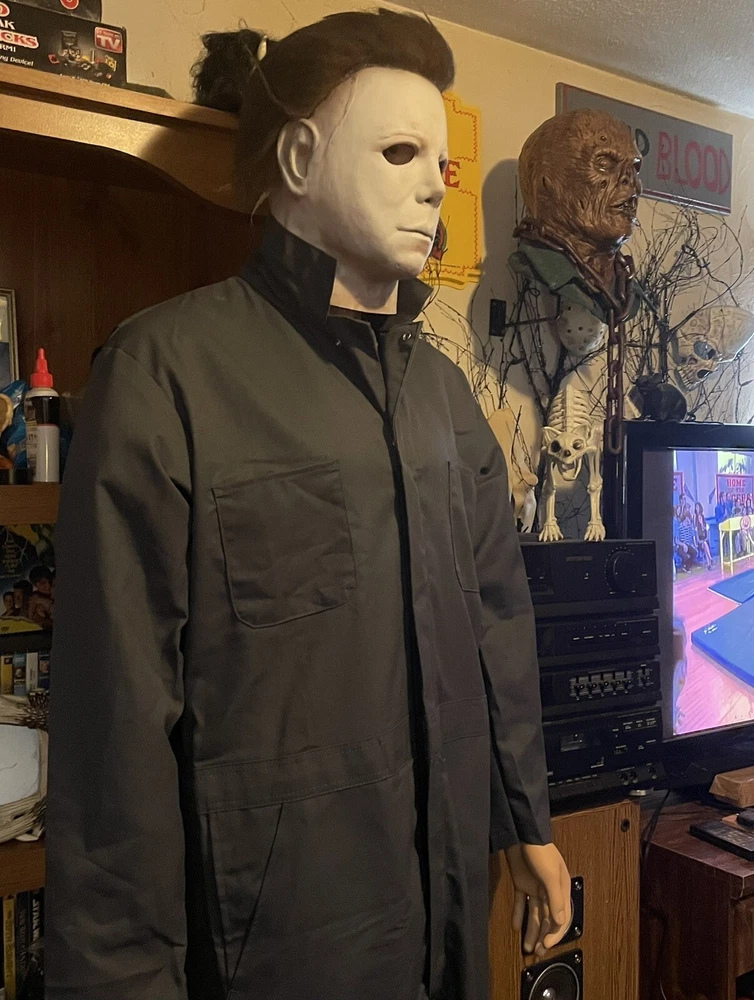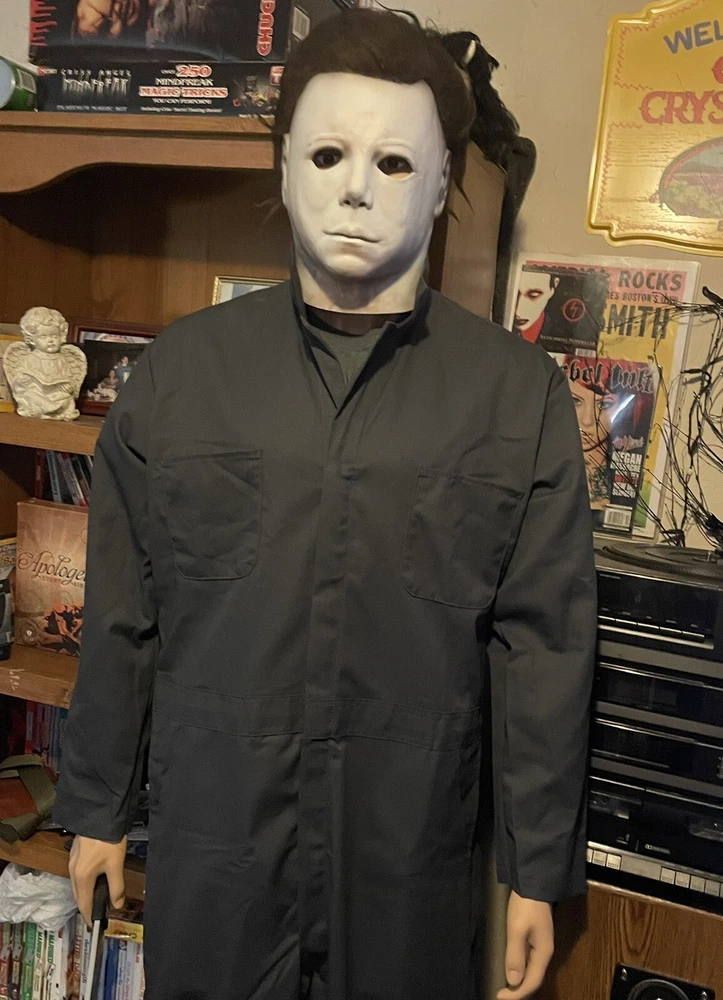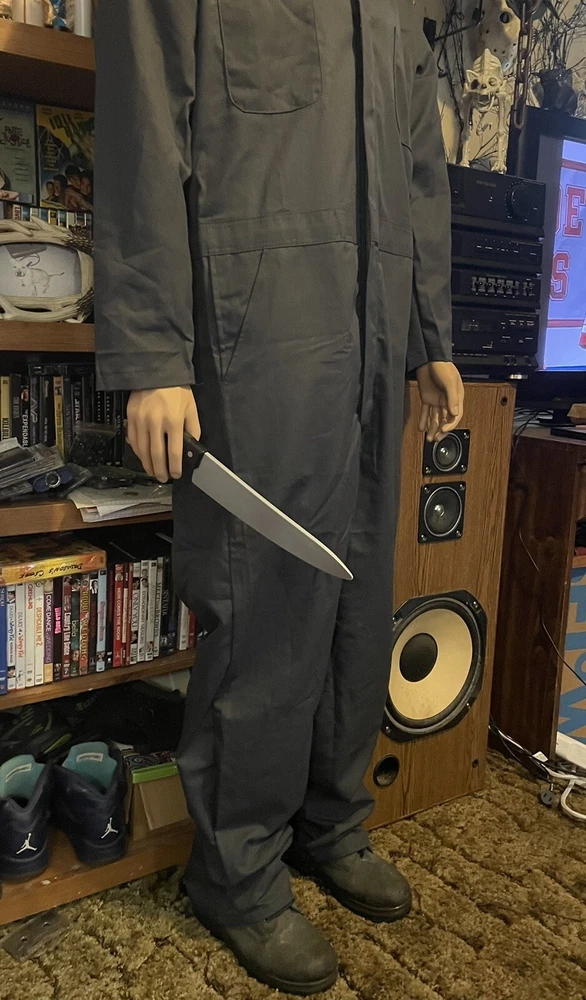 Halloween 78 Michael Myers life size figure. Mask is a ( High Quality) 78’ Nemesis made by the talented Dallas of ShapeKillerStudios. New Charcoal grey Red Kap coveralls. Grey undershirt, plastic Spirit Halloween knife. Boots are not included in sale! They are a sz 9.5 and fit him snug. So you will receive Mannequin, mask , coveralls, undershirt, and knife pictured. NO BOOTS INCLUDED! Everything will ship in the Mannequin’s original box. Size 43x16x15 Also included is a heavy metal base stand for mannequin not pictured. He stands up very well without it . just proped up against something. Willing to work with serious buyers a little on price due to high shipping cost.