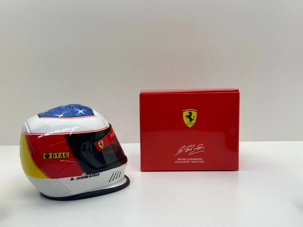 Michael Schumacher 1996 Spain GP 1/2 Helmet Ferrari (Special Edition). Australian Shipping and Tracking - Australia Post Express Parcel $25.00. International Shipping and Tracking - Australia Post International Express $50.00.