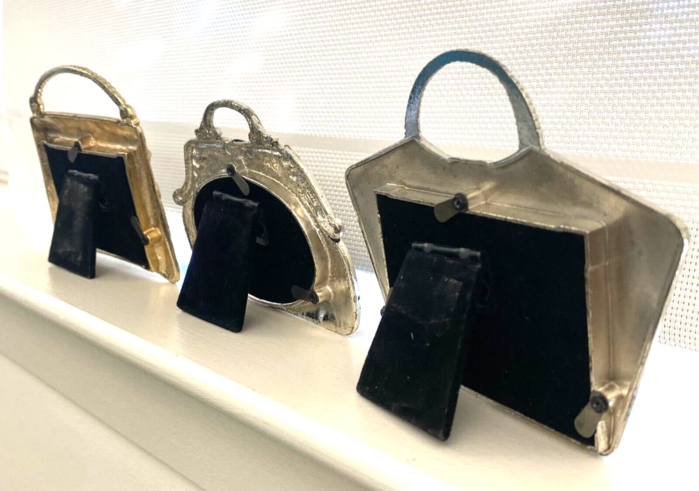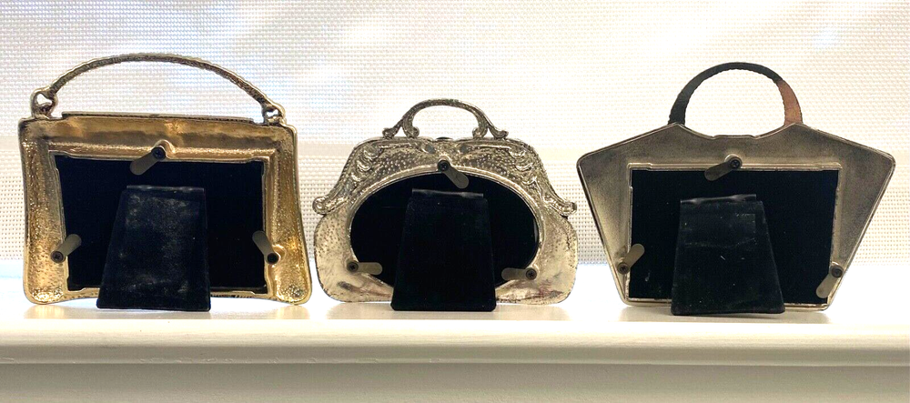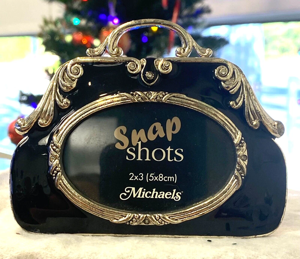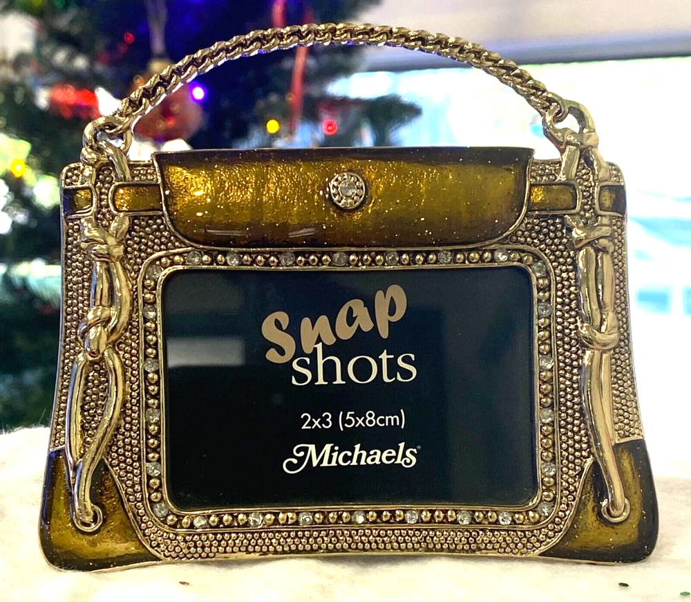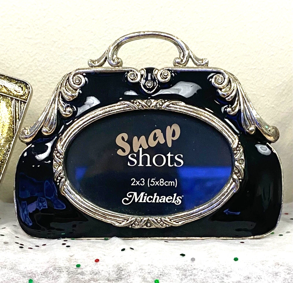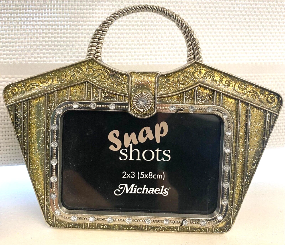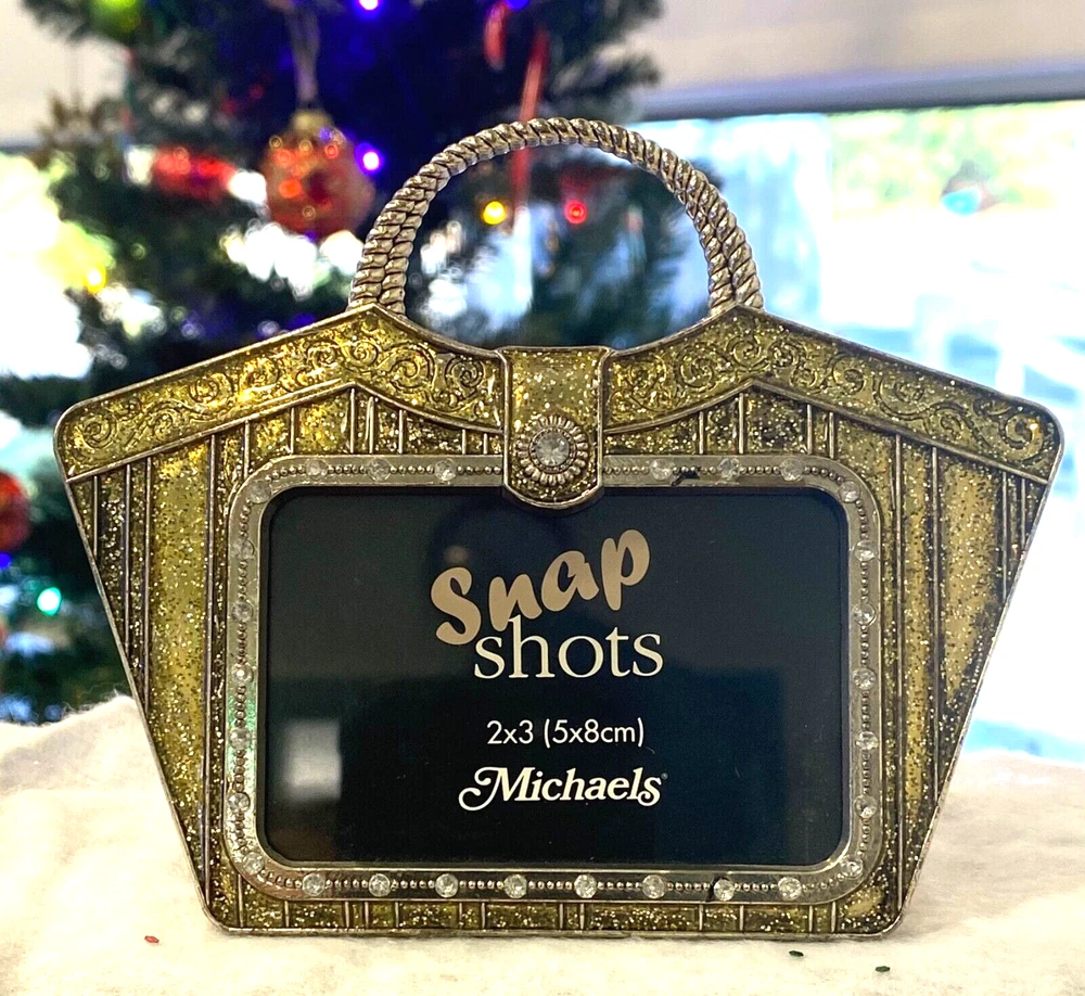 Finish: Glossy Style: Glamour Shape: Hand bag Item Height (Interior): 2 in Suitable for Photo Size: 2 x 3 in Mounting: Free Standing Theme: Photo Frame Pattern: Jeweled and Glittered Hand Bags Occasion: All Occasions Type: Photo Frames Country/Region of Manufacture: China Item Width (Interior): 2 in Photo Insertion Type: Rear-Loading MPN: 01130202439901 Glass Type: Clear Glass UPC: Does not apply Item Length: 1 in Power Source: Does not apply Size: 4.5 x 4 each Color: Black, Gold, Bronze, and Silver Brand: Michaels Features: Glitter gtin13: Does not apply Photo Capacity: 1 in each Frame Orientation: Portrait Material: Enamel, Glitter, and Rhinestones Item Width: 4.5 in Item Height: 4in