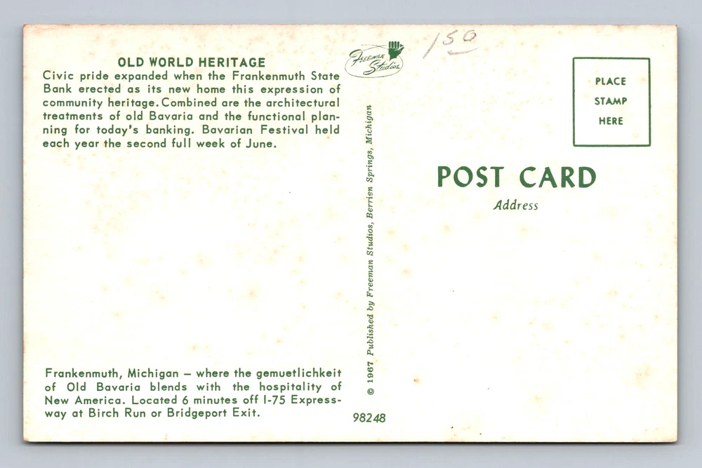 Michigan MI Frankenmuth Old World Heritage Festival Vintage Postcard Souvenir PC