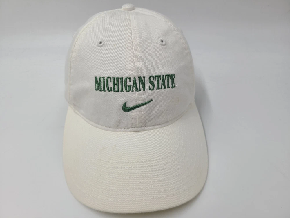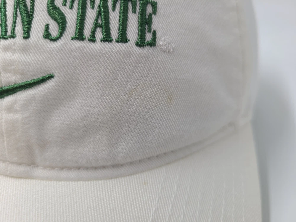 Has stains/discoloration on the brim, front, and side as seen in photos. Michigan State University Spartans Nike Center Swoosh Strapback Hat Cap Men NCAA. EACH ADDITIONAL HAT PURCHASED IS ONLY $1 ADDED SHIPPING!