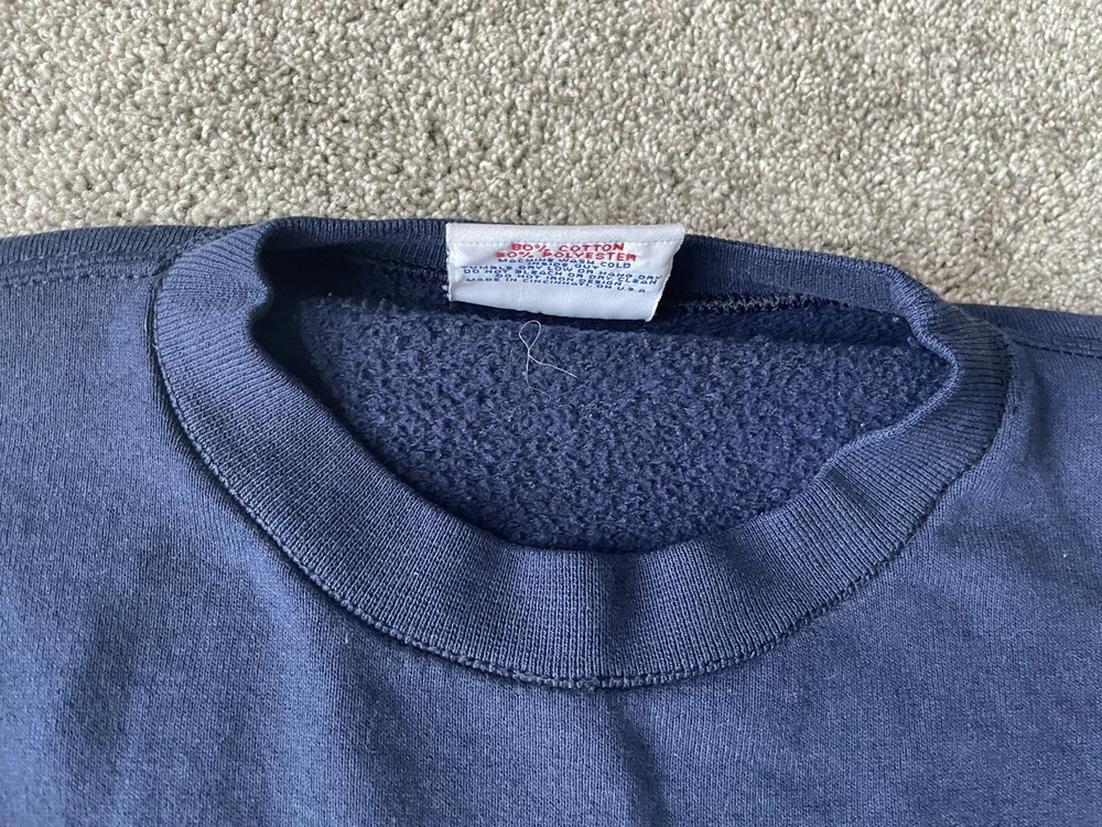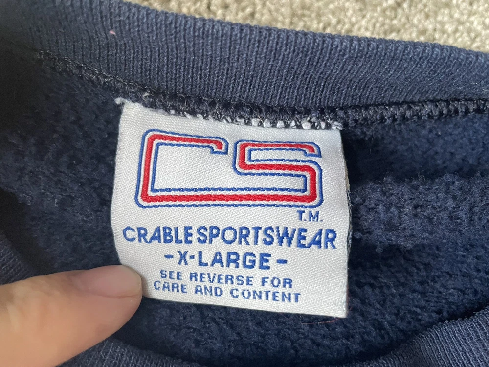 Crafted by Crable Sportswear, this Michigan Wolverines crewneck sweatshirt is a quintessential piece for any die-hard football fan. Adorned in a dark blue, this sweater embodies the spirit of the team and is designed to keep you comfortable while you cheer for your favorite college squad. With its XL size, it's a snug and warm addition to any fan's wardrobe. Proudly made in the United States, this sweatshirt is a nod to football tradition, perfect for regular season games and the playoffs. Whether you're at the stadium or watching from home, the sweater's classic design and durable construction make it a timeless piece for all kinds of fan celebrations.