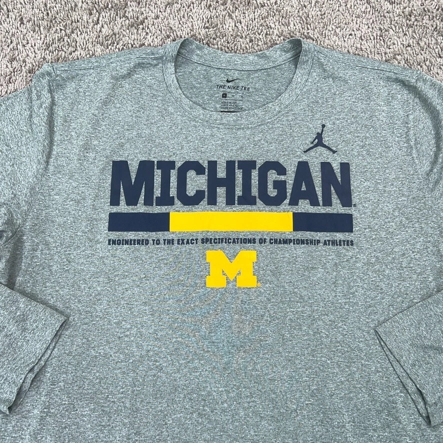 Michigan Wolverines Shirt Mens XL Athletic Gray Nike Jumpman Jordan Performance Condition: - Overall in good used condition. - No rips, stains, or holes. - Nice graphics. Size: - Mens XL. Measurements: - Previous washings may change the sizing written on the tag. - Please refer to the photos above for all measurements. - Please compare our measurements to that of one of your favorite garments. - Please note, item measurements are approximate . All items are bagged and sealed after being photographed, then stored in a smoke free environment to ensure the item is exactly the same as when photographed. I carefully package and ship daily. Feel free to contact me with any questions. All items have been washed per eBay standards & policies.