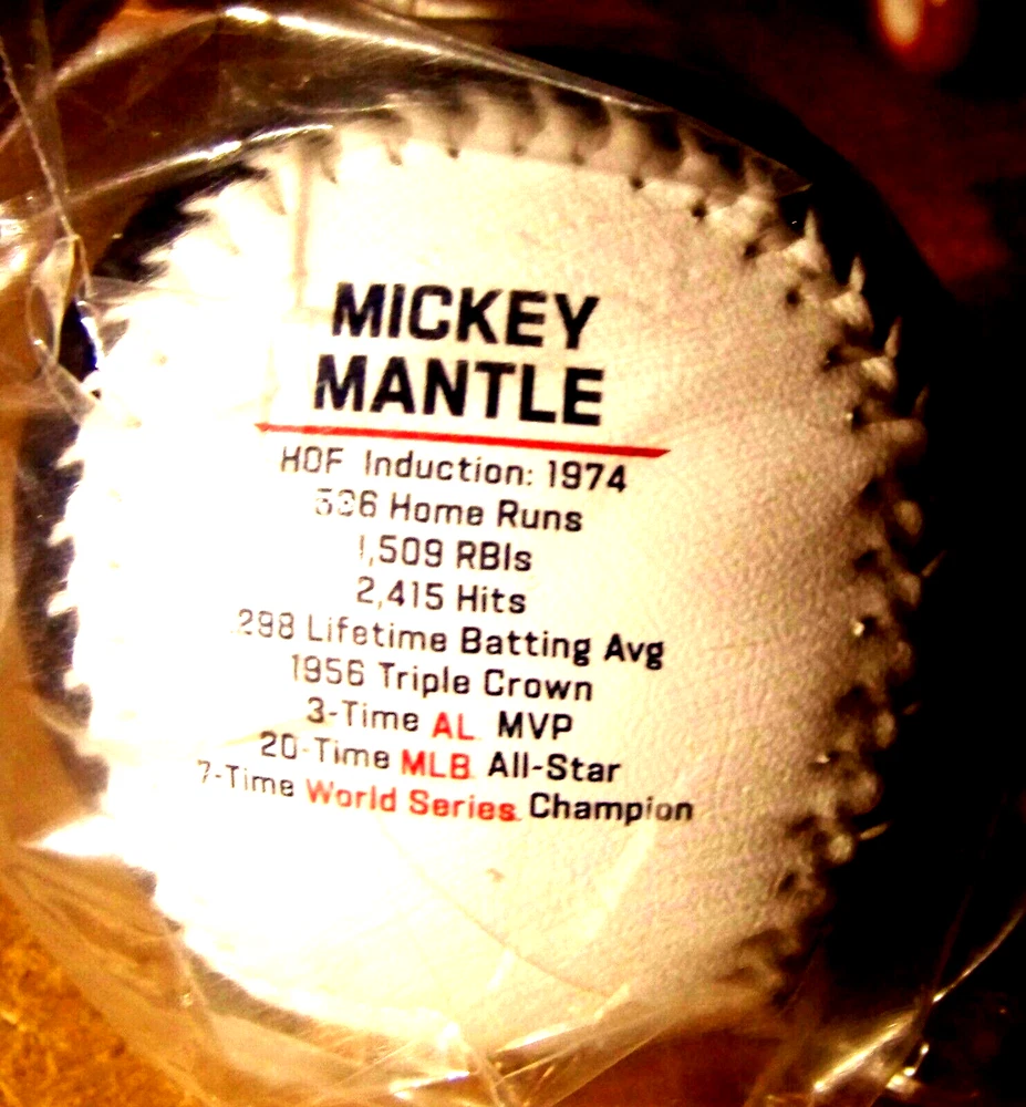 Mickey Mantle baseball New York NY Yankees Hall of Fame ball. stats facsimile signed This MLB officially licensed dark blue & white baseball has white stitching. Printed facsimile autograph / signed. New. Don’t forget to click on my "Stores" link, next to my eBay name, to see other items I currently have listed for sale, or you can copy and paste this address into your browser: stores.ebay.com/highcountrycollectibles SHIPPING INFORMATION Shipping to U.S. addresses is FREE! HIGH COUNTRY COLLECTIBLES Since 1989 – A LEADER IN THE DENVER SPORTS MEMORABILIA MARKET. Check out my other auctions and listings, and keep an eye out for the different, unusual, and EXCLUSIVE items available nowhere else but from High Country Collectibles.
