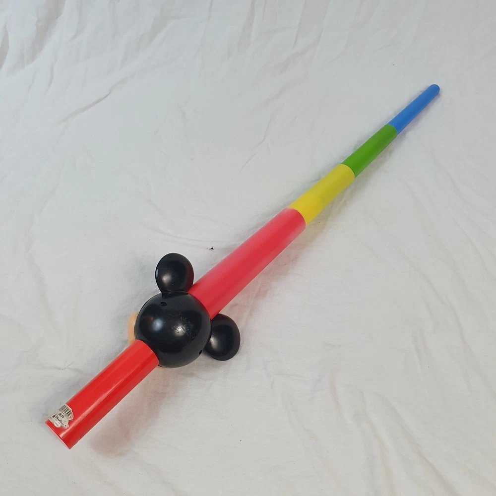 The Mickey Mouse Lightsaber Sword is a unique collectable item inspired by Walt Disney World's DisneyLand Resort. Featuring the beloved character Mickey Mouse, this lightsaber toy is perfect for fans of Disney and collectors alike. With its distinctive rainbow design, this contemporary piece is sure to bring a touch of magic to any Disneyana collection. Made by Disney, this lightsaber sword is a must-have for any Disney enthusiast looking to add a touch of whimsy to their collection.