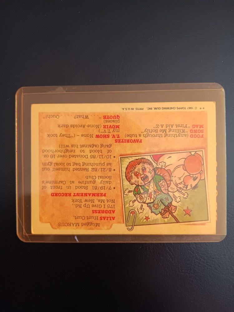 The product is a Garbage Pail Kids trading card from Series 7, featuring the character "Mickey Mouths 258a." Manufactured by Topps in 1987, this non-sport trading card is part of the popular Garbage Pail Kids franchise. The card has been owned since childhood and is in good condition. A nostalgic collectible for fans of the iconic trading card series, this item holds sentimental value for those who grew up collecting Garbage Pail Kids cards.