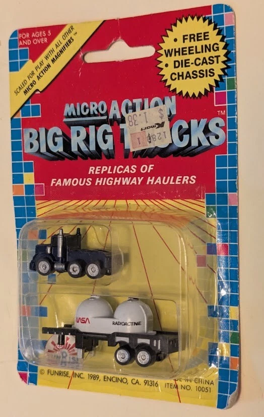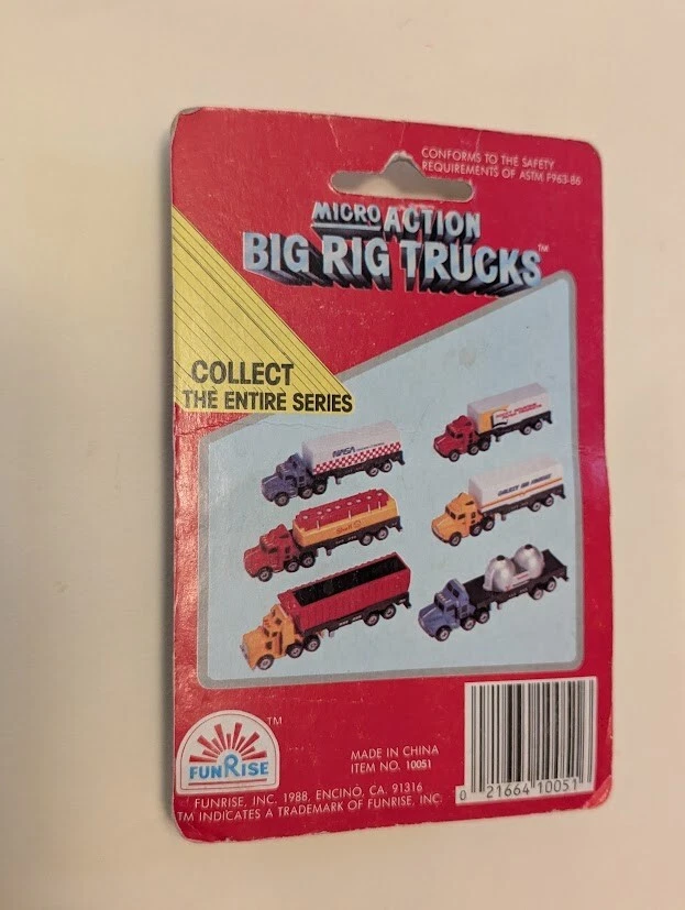 Item #: 10051 Theme: HAZ MAT DANGER Character Family: Micro Action Magnifiers Country/Region of Manufacture: China Brand: Funrise Series: Micro Action Big Rig Trucks Recommended Age Range: 5+ Color: Black White Features: Unopened Box gtin13: 02166410051 Year of Manufacture: 1989 Material: Diecast UPC: 02166410051 Scale: Close to N scale Vehicle Type: Truck