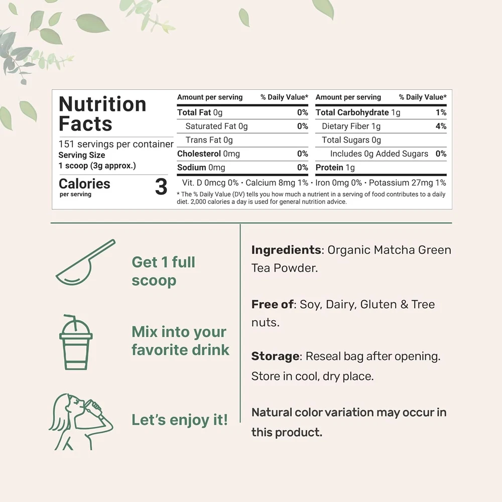 Fast Shipping On All Items 30 Days Money Guarantee Customer Support Excellent Service 100% Satisfaction Satisfaction Guaranteed Micro Ingredients Organic Matcha Green Tea Powder, 1Lb | Premium First Harvest Japanese for Daily Beverage | 100% Pure Culinary Grade | No Sugar, Eco-Friendly Recyclable Bags Specification Item model number MAT-0283 Unit Count 16.0 Ounce Tea Variety Green Brand Micro Ingredients Flavor Organic Matcha Green Tea Manufacturer Micro Ingredients Item Form Powder Package Dimensions 10.41 x 6.83 x 2.36 inches; 1 Pounds Size 1 Pound (Pack of 1) 6.83 inches x 10.41 inches x 2.36 inches. Weight: 1.0 lb Item Description Micro Ingredients Organic Matcha Tea Powder, Pure Matcha Powder Green Tea, 1 Pound, Culinary Grade and First Harvest Authentic Japanese Origin, Unflavored. Best Superfood - Matcha is Rich in Antioxidants and is a Great Source of Natural Energy and Mental Clarity. Rich in Caffeine, Gradually Aids with Digestion, Cleansing and Contains Natural L-Theanine, Provides Good, Clean Energy. Heavy Metal Tested for Safety and Non-Irradiation. Powder lover? Take it naturally in powder for higher concentration, quicker absorption, easier on the stomach, and more ways to have fun! Product Description Why does my matcha taste bitter? Matcha generally tastes a little bitter and vegetal, but this bitter taste comes from catechins and chlorophyll. Due to our organic farming, this helps avoid the use of harmful contaminents, which results in much higher catechins and chlorophyll. Where is your matcha grown? Our organic matcha comes from Uji and Shizuoka Organic Matcha Cooperative farms in Japan. We are also one of the largest importers of Japanese matcha raw materials in the United States. Why does this matcha smell fishy? Premium matcha has a slight seaweed taste due to its high chorophyll content, which is a common way to distinguish matcha powder from green tea powder. The latter has only the taste of green tea and is much cheaper. Discover More Essential Health Supplements Add to Cart Add to Cart Add to Cart Add to Cart Add to Cart Customer Reviews 4.4 out of 5 stars 4,558 4.4 out of 5 stars 4,558 4.4 out of 5 stars 3,128 4.4 out of 5 stars 6,679 4.6 out of 5 stars 1,149 4.5 out of 5 stars 1,085 Price $27.95 $ 27 . 95 — $27.95 $ 27 . 95 $29.95 $ 29 . 95 $29.95 $ 29 . 95 $21.95 $ 21 . 95 Product Supply 1lb Powder 1.5lbs Powder 2lbs Powder 4lbs Powder 16oz Powder 3.53oz Powder Total Servings 151 68 302 453 454 400 Non-GMO ✔ ✔ ✔ ✔ ✔ ✔ Gluten Free ✔ ✔ ✔ ✔ ✔ ✔ 3rd Party Lab Tested ✔ ✔ ✔ ✔ ✔ ✔ About us We offer the best prices around on high quality products. Our E-store includes media such as books, movies, music and games while offering electronics, toys, sporting apparel, clothing, tools, general home, garden items and more. Shipping We are always working hard to ensure your package arrives as soon as possible. Please understand that some factors like weather, high postal traffic, and the performance of shipping companies are outside of our control. We offer free shipping to the lower 48 states and ship within 2-3 business days of payment, usually sooner. We do not accept P.O. Boxes. Please provide a physical address. For shipping outside of the continental USA, we only use eBay's Global Shipping Program.The item is shipped to KY and then sent to the rest of the world. International customers are responsible for all duties and taxes. Continue to check out to calculate costs for shipping the item to your country. Messages regarding eBay's Global Shipping Program MUST be directed at eBay EXCLUSIVELY. Returns We offer a 30-Day Return Policy on items in which you are not completely satisfied with. You have the option of a full-refund or an exchange of the item. No returns are available on items shipped outside of the USA Satisfaction We try over very best to make sure every customer is completely satisfied. If there's a problem, message us! We're happy to help. Payment Options Shop With Confidence