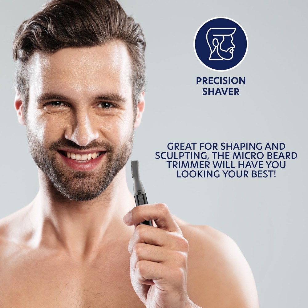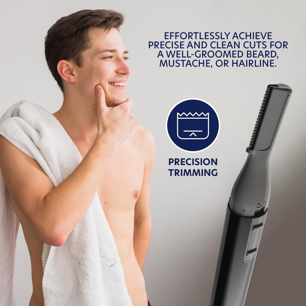 Groom Essentials Micro Precision Beard Trimmer for Men, Mustache Trimmer, Cordless, Brush, Protective Cap - Ergonomic Handle, Double-Sided Trimming Guide BATTERY OPERATION: This men's beard trimmer runs on a single AAA battery, eliminating cumbersome cables for effortless grooming; enjoy uninterrupted trimming sessions with a portable design that lets you move freely without distractions from cords ERGONOMIC DESIGN: Crafted with comfort in mind, this micro precision trimmer boasts a compact, easy-to-hold design that fits perfectly in your hand; ideal for extended grooming sessions, it reduces fatigue while delivering precise, clean trimming every time TWO-SIDED TRIMMING GUIDE: Featuring a dual-sided guide with one side longer than the other, this trimmer adapts to long, medium, or short hair; customize your trimming style effortlessly and achieve a perfectly tailored look that meets your personal grooming needs SMALL YET POWERFUL: Despite its compact size, this micro precision trimmer delivers robust performance with minimal effort; its efficient design makes it easy to store and perfect for on-the-go grooming, ensuring you’re always ready for a quick touch-up GENTLE ON THE SKIN: Engineered to minimize nicks and pulls, this precision trimmer offers smooth, effective grooming that enhances your look; achieve professional-quality results at home while keeping your skin comfortable and irritation-free throughout every use Shipping We offer FREE shipping on all orders! We ship within Three business days of payment, usually sooner. We use a selection of shipping services such as UPS, FedEx, USPS etc. We only ship to the lower 48 states, no APO/FPO addresses or PO Boxes allowed. Local pickups and combined shipping options are not provided at this time. Return You can return a product for up to 30 days from the date you purchased it. Any product you return must be in the same condition you received it and in the original packaging. Please keep the receipt. Payment We accept payment by any of the following methods: PayPal Please pay as soon as possible after winning an auction, as that will allow us to post your item to you sooner! Feedback Customer satisfaction is very important to us. If you have any problem with your order, please contact us and we will do our best to make you satisfied. Contact Us If you have any queries, please contact us via ebay. We usually respond within 24 hours on weekdays. Please visit our eBay store to check out other items for sale! Thank you for shopping at our store.