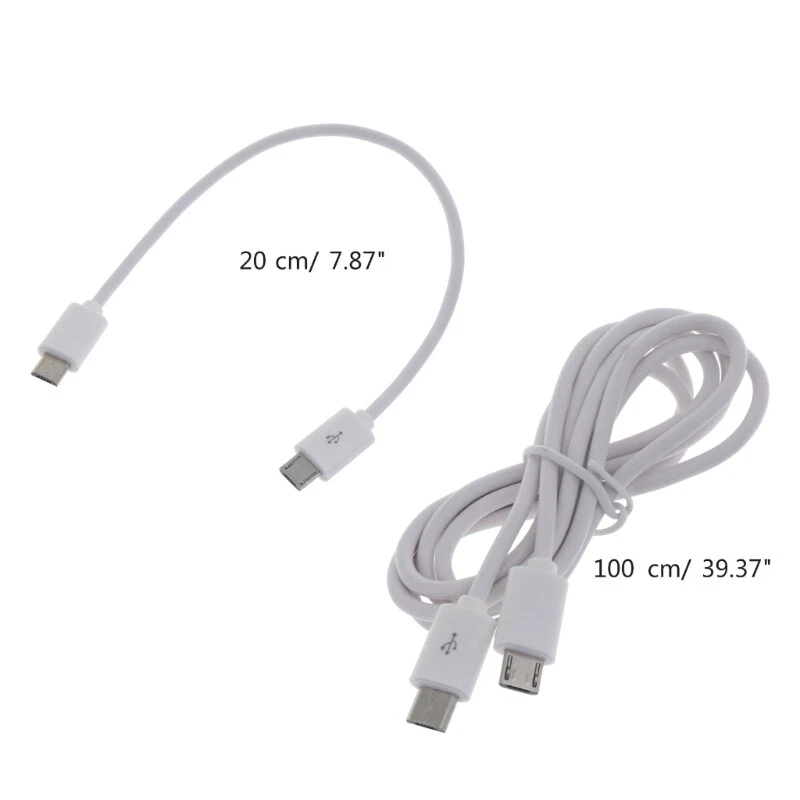 Features: This Micro USB to Micro USB OTG cable enables OTG-capable smartphone/tablet to work as a PC host by connecting another Micro USB equipped device for charging, data transfer, tethering. Kindly Reminder:Please Plug the Host end to your devices with OTG Function. Specially designed for connecting smartphone or tablet to another phone, tablet, Bluetooth-compatible headset, MP-3 players, digital cameras and more devices for data transfer or charging. Perfect solution for gathering data from old phone with broken screen. Great for playing games on your phone/tablet by connecting game controller .Convenient way to hook a DAC.Not work for USB C port. This Dual Micro USB cable support sync data at 480Mbps,high transmission and durable; 20/100CM Long enough for connecting your phones, tablets or drones Specifications: Item Type: Micro USB 2.0 B Male to Micro USB B Male Cable Connecter 1: Micro USB Male Connecter 2: Micro USB Male Material: Plastic+Metal Color: White Cable length: Approx.20cm/7.87in / 100cm/39.4in Package Includes: 1 Piece Micro USB Male to Male Cable note: 1.Transition: 1cm=10mm=0.39inch 2.Please allow 0-1cm error due to manual measurement. pls make sure you do not mind before you bid. 3.Due to the difference between different monitors, the picture may not reflect the actual color of the item. Thank you!