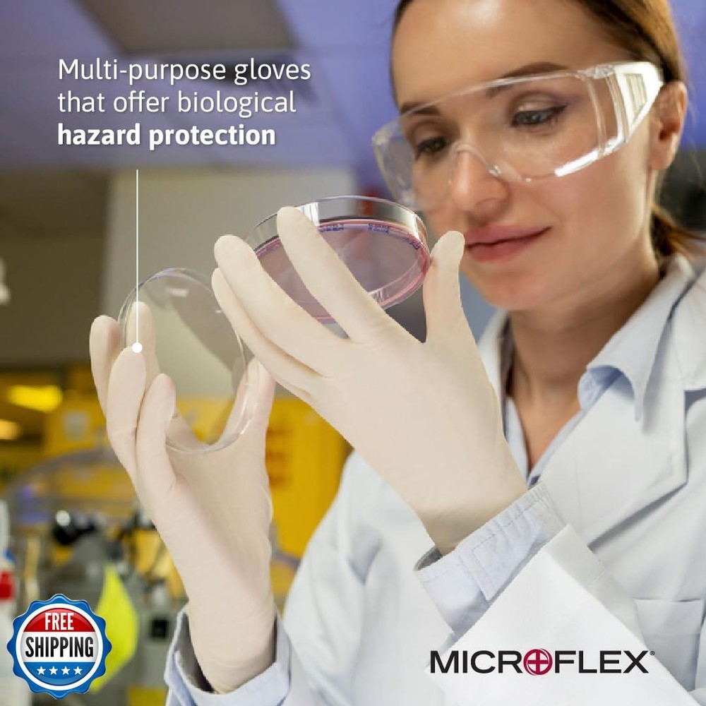 Microflex 10-754 Daily Defense Disposable Latex Gloves for Cleaning, Food Prep, First Aid - Medium, Natural (Case of 1000) Features Versatile single use gloves ideal for household, residential, commercial, or industrial use, including food processing, laboratory, janitorial, auto, mechanics Latex gloves feature textured fingertips for excellent grip when handling food, and superb tactile sensitivity for fine equipment or device handling Durable natural rubber gloves are powder-free, making them a great fit for sensitive skin that needs protection during meal prep, cleaning, or when working in a lab Comfortable glove available in sizes are small (6.5-7" palm circumference), medium (7.5-8"), large (8.5-9"), and extra large (9.5-10") Includes 1,000 Daily Defense ambidextrous gloves Shipping Free & Fast Shipping: We offer free shipping to most of the USA with a normal delivery time of 3-7 days. However, due to the current situation, additional delivery time (up to 3 weeks) may be required for some items. Alternative Carriers: We may use alternative carriers (e.g., USPS, FedEx, UPS) to ensure your package arrives safely and on time. Due to the use of multiple carriers, we are unable to provide a tracking number automatically. Handling Time: Orders are processed and shipped within 1-2 business days of receiving cleared payment. Shipping Restrictions: Shipping to Alaska, Hawaii, Puerto Rico, Guam, and other US territories may incur shipping charges or delivery restrictions. Please contact us before ordering, or your order can be refunded/cancelled. State Restrictions: Certain items may not be shipped to California due to state regulations. Contact for Tracking Updates: If you require tracking updates or have any concerns about the delivery of your order, please feel free to contact us, and we will be happy to assist you. Return Policy 30-Day Hassle-Free Returns: If you are not completely satisfied with your purchase, you can return the item for free within 30 days of receiving it for a full refund or exchange. Easy Return Process: Contact us, and we will provide you with a prepaid return shipping label and detailed instructions. No Restocking Fee: There are no restocking fees for returns. However, the buyer is responsible for return shipping costs if the return is not due to a seller"s error. Refund Processing: Refunds will be processed within 1 business day of receiving the returned item in its original condition. Feedback Your feedback is extremely important to us. We strive to provide the best products and customer service possible. If you are satisfied with your purchase, please take a moment to leave us a positive review. If you have any concerns or issues with your order, please contact us before leaving negative feedback. We are committed to resolving any problems and ensuring your satisfaction. Contact Us If you have any questions or concerns, please feel free to reach out to our customer support team. You can contact us through the eBay messaging system. We are available Monday to Friday, 9:00 am to 5:00 pm EST, and we will do our best to respond to your inquiry within 24 hours. Thank you for supporting our small family business!