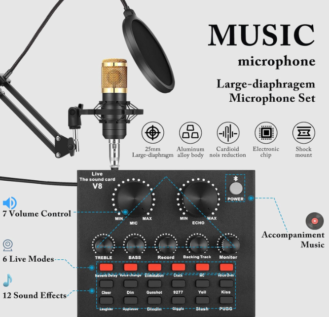 Microfono Condensador De Estudio Profesional Para PC Youtubers Podcast BM 800 US Excelente calidad de sonido: el micrófono de condensador utiliza tecnología avanzada de reducción de ruido inteligente y tecnología de captación cardioide para captar su voz en todas las direcciones. El filtro antipop de doble capa y la tapa de espuma a prueba de viento reducen aún más el ruido, y luego es procesado por el chip DSP profesional de la tarjeta de sonido para garantizar un sonido claro y completo. Paquete de equipo de podcast todo en uno: el paquete de equipo de podcast está equipado con un micrófono de condensador BM-800, filtro antipop de doble capa, un soporte de brazo de tijera de suspensión ajustable, soporte de choque, tapa de espuma antiviento, auriculares, cable de alimentación, tarjeta de sonido en vivo. Preferible para que realice podcasts, transmisiones en vivo, transmita medios y grabe música y videos cortos. Tarjeta de sonido multifuncional: la clásica tarjeta de sonido V8 puede ajustar cuatro modos de sonido para satisfacer las necesidades de su blog, y también puede ajustar cuatro variantes de sonido (femenino, masculino, infantil y monstruo) con 10 efectos de sonido especiales, agregando más diversión a su transmisión en vivo. Potente compatibilidad: la interfaz de audio tiene una fuerte compatibilidad, compatible con teléfonos inteligentes, PC, PlayStations (PS4, Xbox...) y más. Puede ser compatible con Windows, iOS, Android, Mac OS, Chrome OS y más. Este kit de dispositivo de podcast satisface las necesidades de la mayoría de los escenarios. Unidad libre, plug and play. Conexión USB Plug and Play: tan fácil como conectar y usar, solo use los cables, auriculares, para conectar con la tarjeta de sonido y el equipo que desee, y funciona automáticamente con su computadora portátil de escritorio Mac o Windows - no requiere alimentación fantasma, por favor úselo como completamente cargado. (se descargará un software automáticamente) Atención: cuando esté usando el dispositivo por primera vez o el producto no se haya usado durante mucho tiempo, le sugerimos que primero cargue completamente la batería para garantizar el uso normal del producto. Si el controlador no se descarga automáticamente, puede comunicarse con nuestro equipo de posventa profesional de ALPOWL y haremos todo lo posible para ayudarlo a resolver el problema. PROMESA DE ALPOWL: Nuestro objetivo es proporcionar productos de alta calidad para brindar alegría a su familia y amigos. 《Servicio de reemplazo sin motivo de 365 DÍAS y 40 días sin motivo para devolución, soporte tecnológico DE POR VIDA, ¡ordene con total confianza!》Solo contáctenos si tiene alguna pregunta y haremos todo lo posible para ayudarlo a resolver cualquier problema. ENVÍO: ¡Ofrecemos envío GRATIS en todos los pedidos! Enviamos dentro de los tres días hábiles posteriores al pago, generalmente antes. Utilizamos una selección de servicios de envío como UPS, FedEx, USPS, etc. Solo enviamos a los 48 estados inferiores, no se permiten direcciones APO/FPO ni apartados postales. En este momento, no se ofrecen recogidas locales ni opciones de envío combinado. PAGO: Aceptamos pagos mediante cualquiera de los siguientes métodos: PayPal ¡Pague lo antes posible después de ganar una subasta, ya que eso nos permitirá enviarle su artículo antes! COMENTARIOS: La satisfacción del cliente es muy importante para nosotros. Si tiene algún problema con su pedido, comuníquese con nosotros y haremos todo lo posible para que quede satisfecho. ¡Gracias por comprar con nosotros!