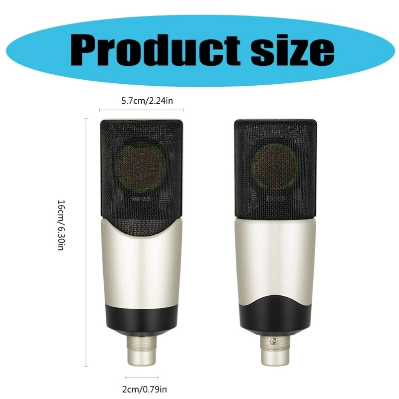 Microphone Sound Card Computer Live Broadcast Microphone 48V Large Diaphragm Features: Featuring large diaphragm that ensures high sensitivity and captures every detail of your sound This microphone boasts a classical with excellent shock absorbing mount to effectively filter sounds and reduce noise. Suitable for musicians, podcasters, live streamers, and broadcasters, achieve professional recordings. Whether you're podcasting from home, or broadcasting live, this microphone delivers clear sound thanks to its low cut filter function and noise cancellation capabilities. Suitable for capturing subtle nuances and warm tones, ensuring your voice or instrument shines through with depth. Specifications: Component:Metal Response frequency: 20Hz-20kHz. Sound pressure level: 130dB Output impedance: 150Ω 30% (at 1khz) Impedance: >680Ω to noise ratio: 58dB Operating voltages: 48V Size:Approx.160x57mm/6.3x2.24inch Package Includes: 1Pc Condenser Microphone note: 1.Please allow 1-2cm errors due to manual measurement, making sure that you not mind before order. 2.Due to the differences between different monitors, the picture may not reflect the actual of the item.