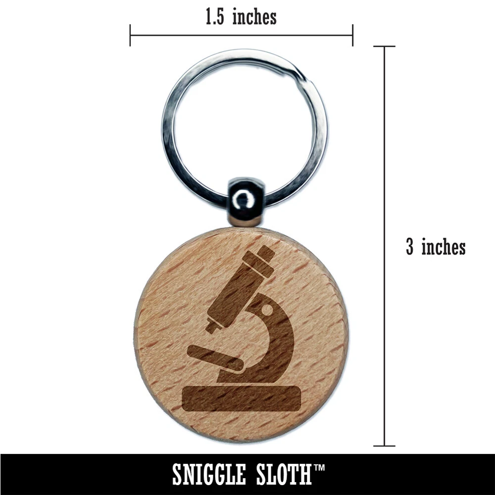 Microscope Biology Science Engraved Wood Round Keychain Tag Charm