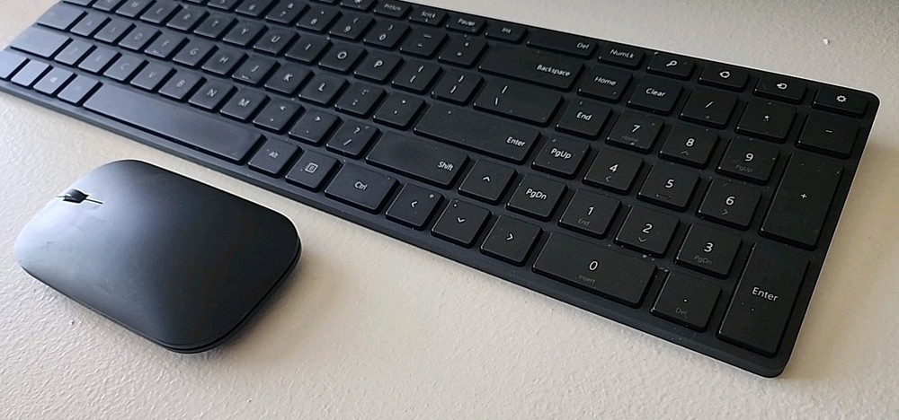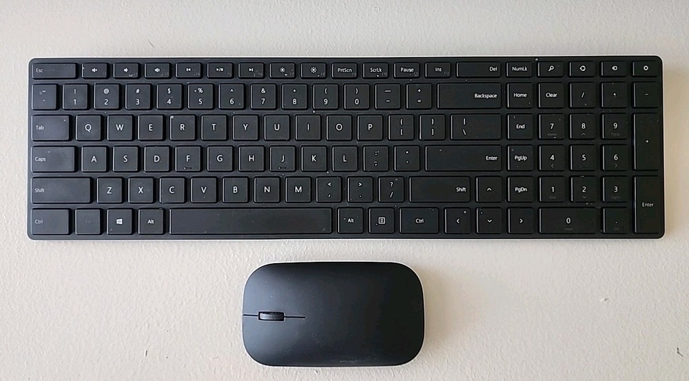 GENUINEMicrosoft Designer Bluetooth Desktop Keyboard & Mouse 7N9-00001– Black ExcellentCondition / NO BOX Genuine item, I traveled with this an very rarely used it. I would say I’veuse it 10 times for about an hour a time. Overall greatcondition Retail box and manualsare MISSING. Included are the Keyboard and the mouse, as pictured. Key Features · Bluetooth4.0 Support · 2.4GHz Operating Frequency · Upto 32' Wireless Range · Built-InNumber Pad Microsoft7N9-00001 Overview Controlyour computer in style with the Designer Bluetooth Desktop Keyboard &Mouse from Microsoft. This Bluetooth keyboard and mouse features thelow-energy-compatible Bluetooth 4.0 standard, and can be connected to computersrunning Windows 8 or later devices. They may also work with Windows 7 systemsalongside select macOS, iOS, and Android devices with limited functionality.The included mouse features BlueTrack technology for improved accuracy onnearly any surface, while the ambidextrous design allows it to be used witheither hand. Accompanying the ambidextrous mouse is a slim keyboard completewith media center controls and a built-in number pad. · BluetoothSmart. · Clutter-freeand reliable experience utilizing Bluetooth 4.0 technology Media Center Controlmedia playback from your keyboard. · Built-InNumber Pad. · Thekeyboard is full-sized with a built-in number pad. · BlueTrackTechnology. · Combinesthe power of optical with the precision of laser for enhanced tracking onvirtually any surface. · Designedfor Either Hand. · Ambidextrousdesign allows you to control your mouse in either hand compatibility. · FullFunctionality: Windows 8, 10, 11. · LimitedFunctionality: Windows 7, macOS 10.8 to 10.10, Android 4.2 to 5.0, iOS 8. · NotCompatible: macOS 10.7, Android 3.2, iOS 6 & 7