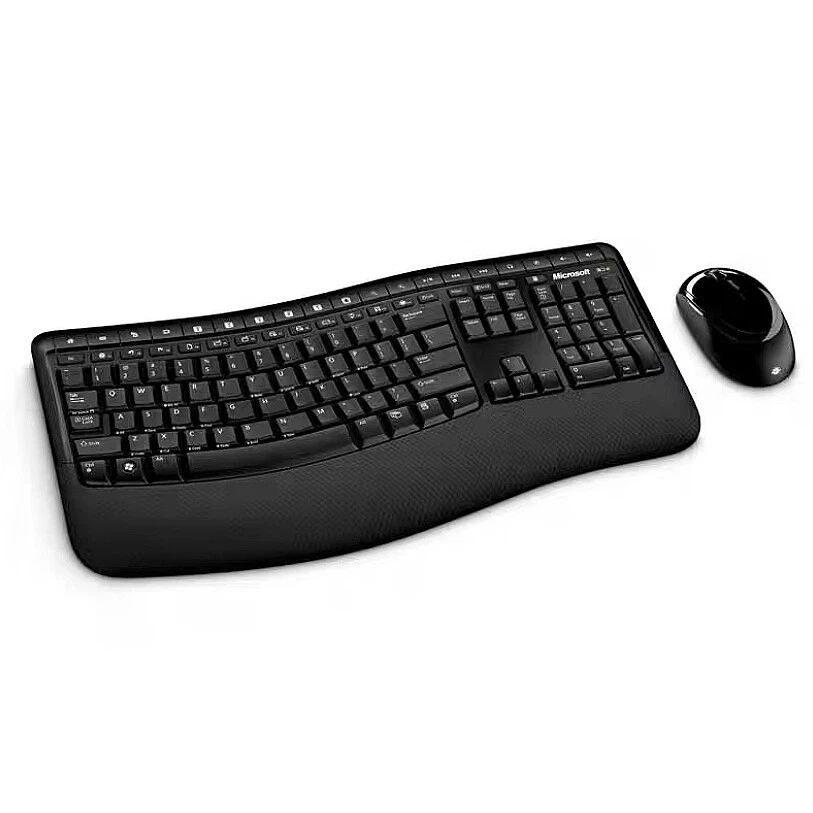 Product Description Dress up your desktop with this beautifully modern keyboard and mouse set. With a tasteful mix of glossy and textured Black surfaces, This desktop set will have you appreciating its good looks every day. The ergonomist-approved curved keyboard encourages you to use a more natural posture that aligns your arms, wrists, and hands for greater comfort. With a reliable wireless connection, you can eliminate clutter and work from anywhere in the room's to 30 feet away. About this item The comfort curve design from Microsoft encourages natural wrist posture and is easy to use Built in Palm rest helps support and straighten wrists Give yourself room to move with a wireless keyboard that lets you work without worrying about tangled wires Ergonomist-approved comfort curve design