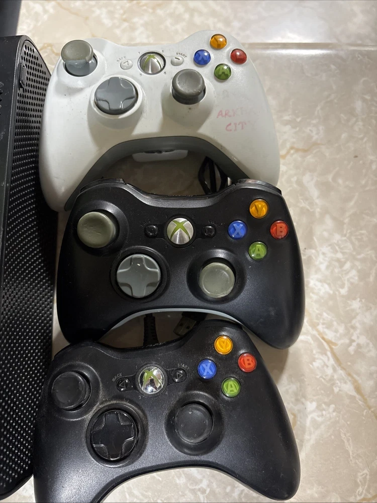 Good condition, used as is , tested works great , white controller is missing back battery part , other 2 controllers are complete thank you Get ready to immerse yourself in the world of gaming with this Microsoft Xbox 360 Elite Console. With a storage capacity of 120GB, you can store a large number of games and media. This console is perfect for gamers who want to take their gaming experience to the next level. It comes with a lot of games including Halo and Assassin's Creed that will keep you entertained for hours. This console is designed to deliver an exceptional gaming experience with its advanced technology. The sleek and stylish design of this console makes it a great addition to any entertainment setup. It is perfect for playing the latest games, watching movies, and listening to music. Whether you are a hardcore gamer or just looking for a console to enjoy some entertainment, this Microsoft Xbox 360 Elite Console is the perfect choice.