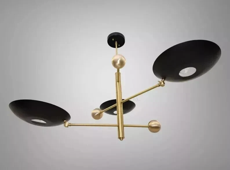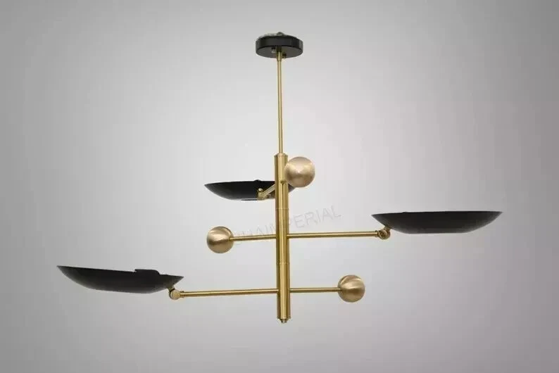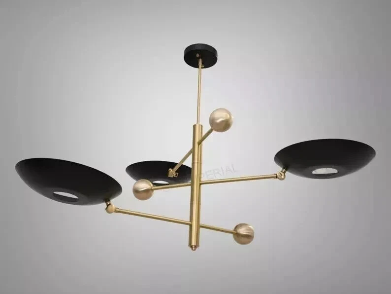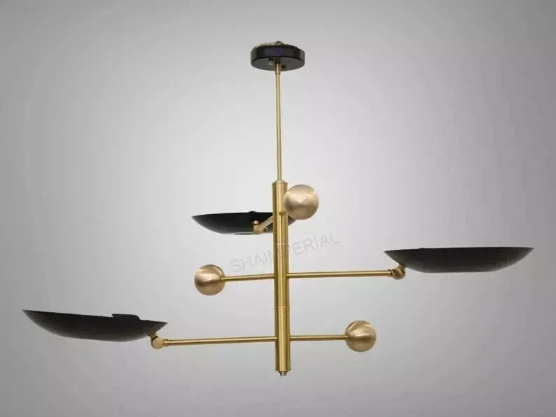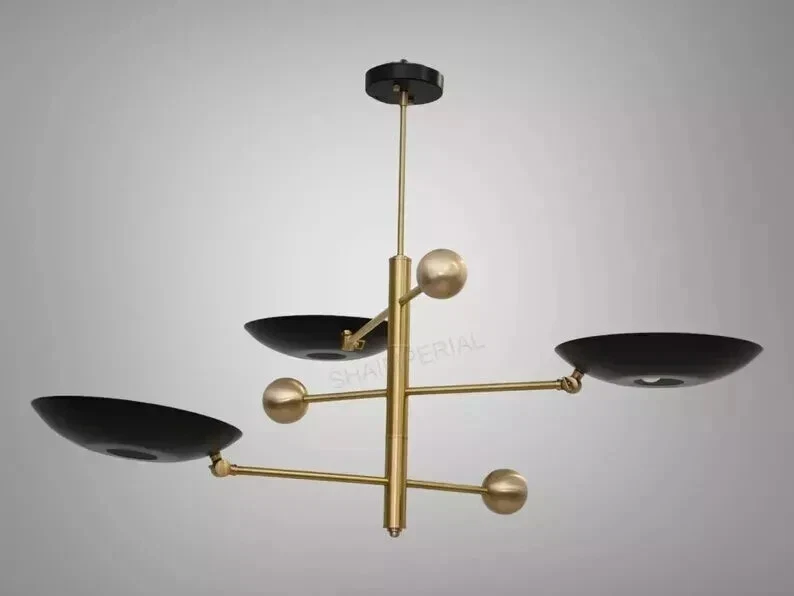 Products Details: Mid Century 3 Light Stilnovo Style Modern chandelier Raw Brass ceiling Light Fixture. With 12" Dome Brass Shade & 3 lamp shades were the light bulb is mounted Upward side with lamp inside. This gives a indirect light. 8W to 15w max recommended by us. Light bulbs are not included. All our light fixture are crafted by hand. This particular chandelier has been made with Brass material . minor variations in finish are an inherent characteristic of such material and add to the beauty and uniqueness of the product. Mid Century 3 Light Stilnovo Style Modern chandelier Raw Brass ceiling Light Fixture. Made of Pure Brass Width: 40 inches Height: 24 inches Depth: 40 inches shade : 12 Inches Bulb Included : No Finish Also Available In: Raw Brass Antique Brass Antique Black Polished Brass Brushed Brass Polished Chrome Brushed Chrome Black Brass Socket Type : 4 x E26 120 voltage bulbs are required for US & Canada (not included). 4 x E27 240 voltage bulbs are required for UK & Europe (not included). Recommended bulbs are 8 watt to 15 watt. Halogen Bulbs or LED Bulbs. Materials Pure Brass, Have a wonderful day!