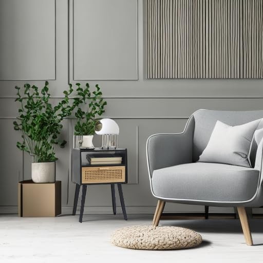 This nightstand is a perfect blend of mid-century charm and modern functionality! The sleek black finish and rattan drawer add a stylish touch to any room, while the sturdy wood shelf offers great storage. Assembly was a breeze, and its compact size fits perfectly in small spaces. I love using it as a bedside table—it’s both practical and eye-catching. The quality is solid, and it looks way more expensive than it is. Highly recommend for anyone wanting a chic, versatile piece!