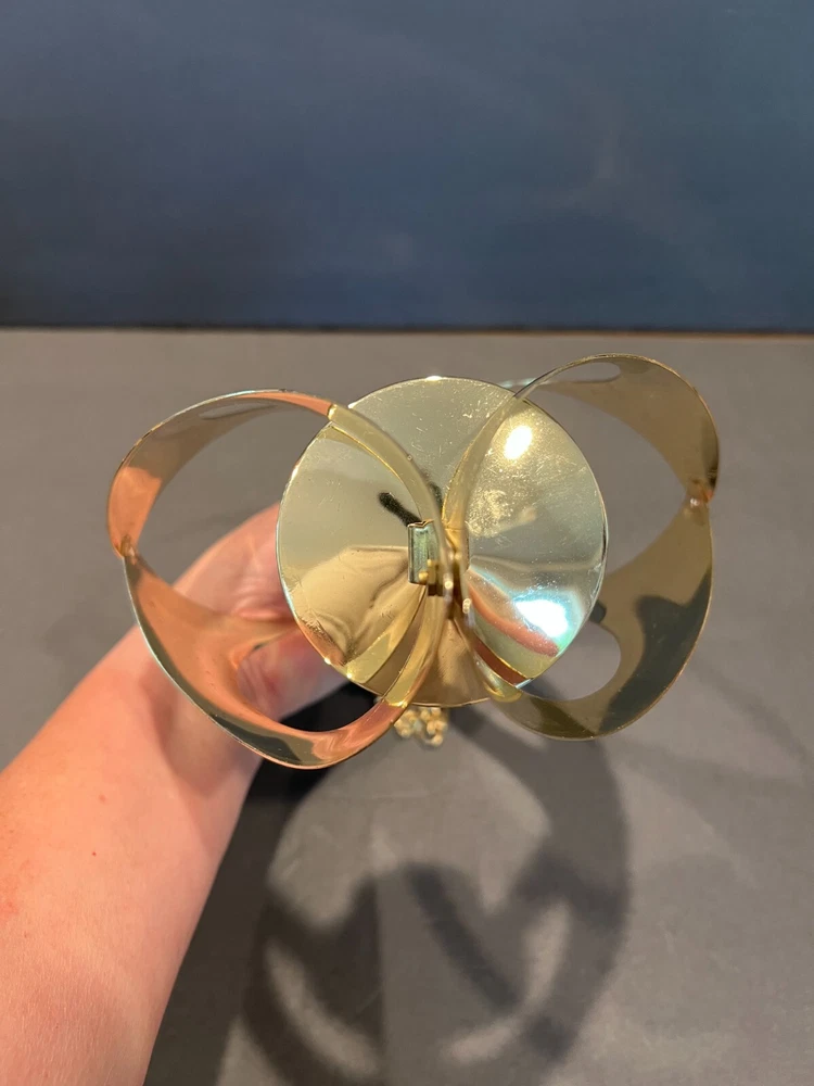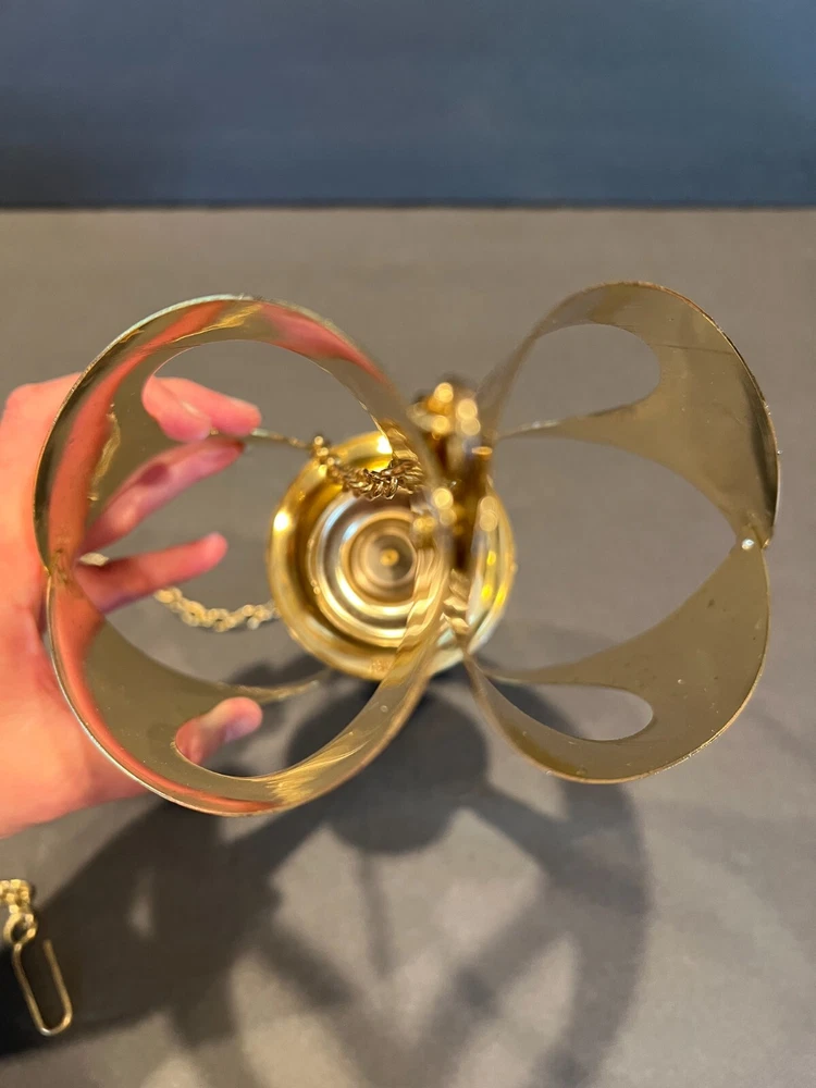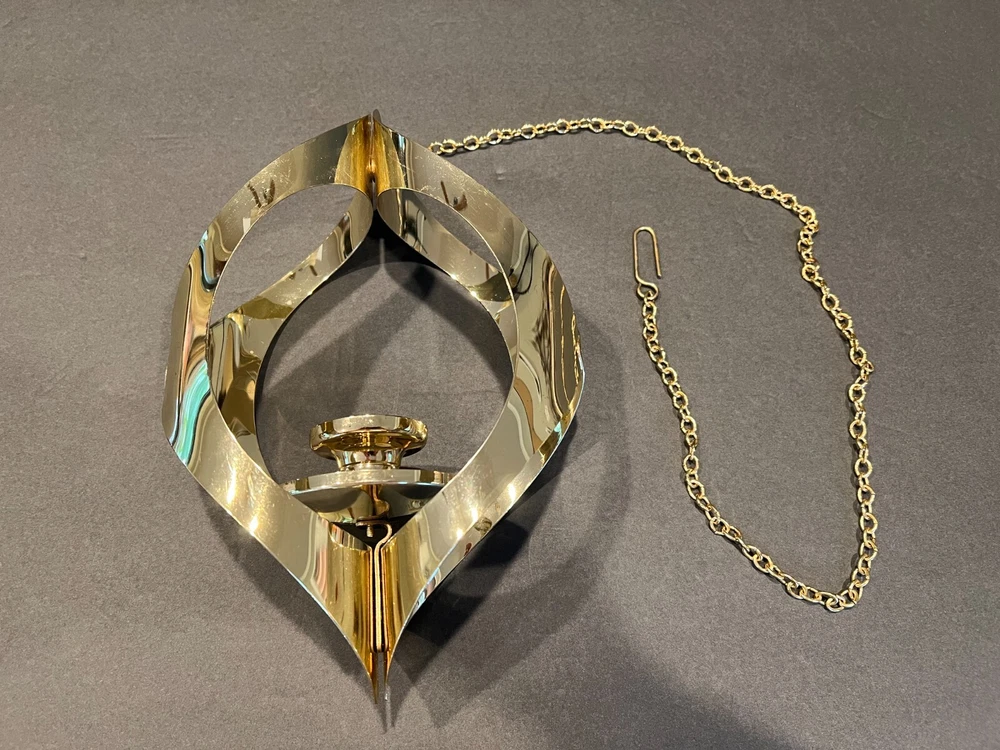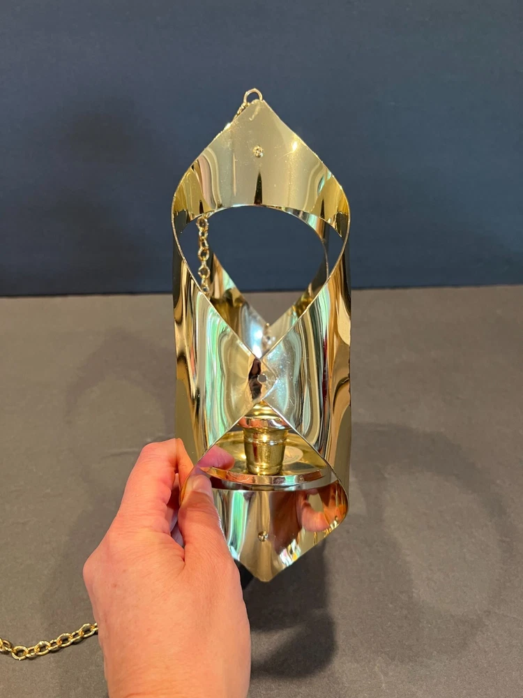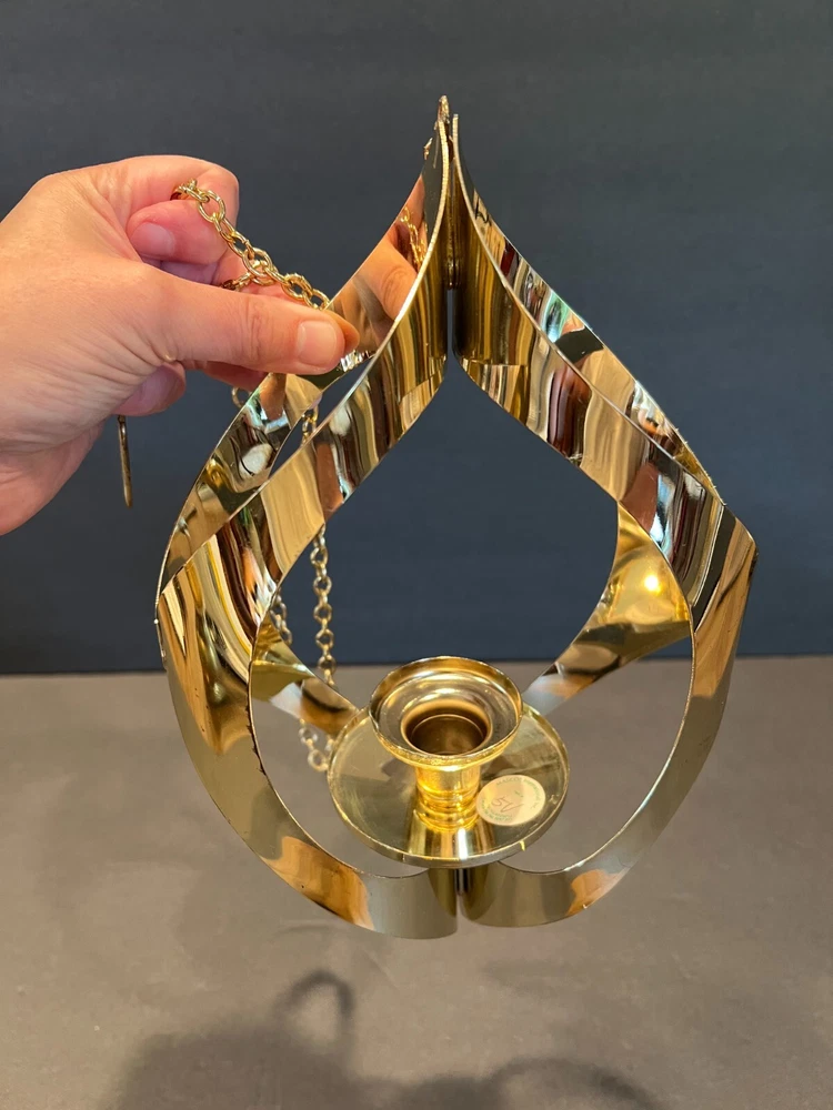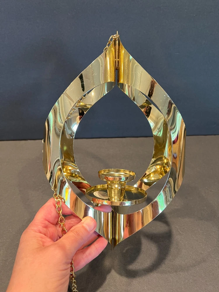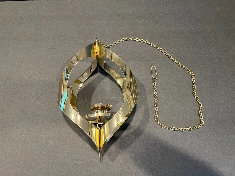 Color: Gold Occasion: All Occasions Department: Adults Candle Holder Top Dimensions: 2 in x 2 in x 2 in Item Height: 11 in from fixture top to bottom Item Weight: 10.2 ozs Antique: No Customized: No Era: Mid 20th Century (1941-1969) Room: Any Room Chain Length: 28.5 in including the Hanger (1.75 in L) Type: Candle Holder Brand: Mascot International Care Instructions: Clean with Damp Cloth, Easy Care Candle Height: Max 3 in Style: Modern Time Period Manufactured: 1960-1969 Finish: Metallic Theme: 60's Mid-Century Modern Seller Notes: “Excellent Condition; Minor Scratching; see pics” Item Width: 7 in Handmade: No Suitable For: Mini Candle Material: Metal Subject: Mid-Century Candleholder Country/Region of Manufacture: United States Candle Holder Inner Dimensions: 1 in x 1 in x 1 in Features: 3D Effect, High Gloss Item Depth: 3 in Size: Medium Original/Reproduction: Original Shape: Asymmetrical Number in Pack: 1