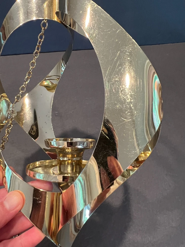 Mid Century Modern MCM Hanging Metal Candle Holder Marked Mascot Pat. Pending US