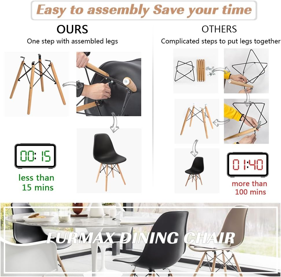 Store New Arrivals Add to Favorite View Feedback Contact Pre Assembled Modern Style Dining Chair Mid Century Modern DSW Chair, Shell Lounge Plastic Chair for Kitchen, Dining,Bedroom, Living Room Side Chairs Set of 4 (Black) Description Item model number MY01939 Style Mid-Century Modern Pattern Solid Seat Height 18.1 Inches Theme Mid-Century Modern Seat Back Interior Height 16.5 Inches Material Polypropylene, Alloy Steel, Plastic Item Weight 30.78 Pounds Unit Count 4.0 Count Room Type Office, Kitchen, Bedroom, Dining Room Is Customizable No Tilting No Maximum Weight Recommendation 275 Pounds Age Range (Description) Adult Arm Style Armless Leg Style Tapered Leg Finish Type Painted Model Name Pre Assembled Modern Style Dining Chair Mid Century Modern DSW Chair Included Components Four dining chairs Indoor/Outdoor Usage Indoor Back Style Solid Back Frame Material Plastic Seat Material Type Plastic Item Weight 30.8 pounds Fill Material Foam Is Discontinued By Manufacturer No Surface Recommendation Hard Floor Is Foldable No Special Feature Ergonomic Furniture base movement Glide Reclining Position Count 1 Color Black Form Factor Plastic Furniture Finish Plastic Shape Round Recommended Uses For Product Dining Product Dimensions 16.1"D x 18.1"W x 33"H Seat Depth 16.7 inches Size 16.1D x 18.1W x 34.6H Inch Design: Ergonomic design of perfect height & curved seat supports user’s back well in sitting and leads to an easy conversations One Step to Complete Assembly: With assembled legs, only screw them in seat to complete whole installation Ideal for Home and Office Use: Living rooms, dining rooms, bedrooms, lobby, reception, waiting rooms and banquets Specifications: Weight limit 300 pounds, seat dimension 18.1 (W) x 16.1(D ) x 16.5 (H) Inches, overall dimension 18.1 (W) x 16.1(D ) x 33 (H) Inches. To save your time and get suitable items, please kindly have a check of your table or desk height and the expected chair height Material: Matt finish durable molded plastic , real wood and metal connectors add Product Description Painless and Fast assembly Elegant Shape Matte finished durable molded plastic with curved seat leads to an easy conversations Strong Material Bend resistant high quality back supports user's back well in sitting Pre Assembled Legs Black strengthened steel frame for added sturdiness and durability Human Friendly Wood Rubber wood legs are sturdy and mankind friendly, suitable for a long time use of a family 1 DINING ROOM 2 KITCHEN 3 CAFES Plastic Chairs More Options From Furmax White Color Black Plastic&Wood Material PU Leather&Wood 4 Quantity in One Box 4 or 2 Multicolors Wooden Legs Upholstered White Color White Plastic&Wood Material Plastic&Wood&Sponge 4 Quantity in One Box 4 Multicolors Wooden Legs Upholstered White Color Grey Plastic&Wood Material Velvet&Wood 4 Quantity in One Box 2 Multicolors Wooden Legs Upholstered White Color Grey Plastic&Wood Material Fabric&Wood&Sponge 4 Quantity in One Box 4 Multicolors Wooden Legs Upholstered Leather Chairs Padded Chairs Velvet Chairs Fabric Chairs ABOUT US We offer the best prices around on high quality products. Our E-store includes media such as books, movies, music and games while offering electronics, toys, sporting apparel, clothing, tools, general home, garden items and more. SHIPPING We are always working hard to ensure your package arrives as soon as possible. Please understand that some factors like weather, high postal traffic, and the performance of shipping companies are outside of our control. We offer free shipping to the lower 48 states and ship within 2 business days of payment, usually sooner. We do not accept P.O. Boxes. Please provide a physical address. For shipping outside of the continental USA, we only use eBay's Global Shipping Program.The item is shipped to KY and then sent to the rest of the world. International customers are responsible for all duties and taxes. Continue to check out in order to calculate costs for shipping the item to your country. Messages regarding eBay's Global Shipping Program MUST be directed at eBay EXCLUSIVELY. RETURNS We offer a 30-Day Return Policy on items which you are not completely satisfied with. You have the option for a full-refund or an exchange of the item. No returns are available on items shipped outside of the USA. PAYMENT We accept PayPal. CONTACT US This page content is yet to come Please ad us to your favorite seller and visit again later Thank You CUSTOMER SATISFACTION We try our very best to make sure every customer is completely satisfied. If there's a problem, message us! We're happy to help. WE ACCEPT Copyright © 2021 AutoDS. | All Rights Reserved