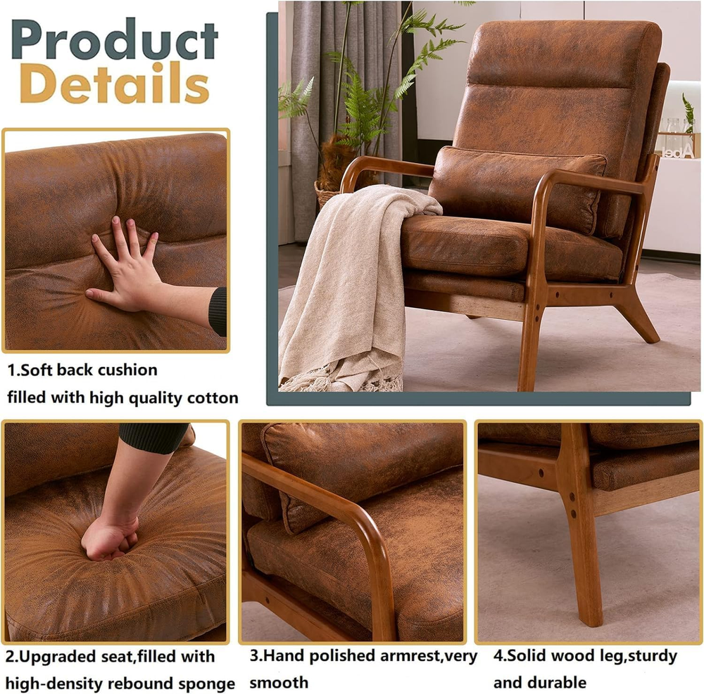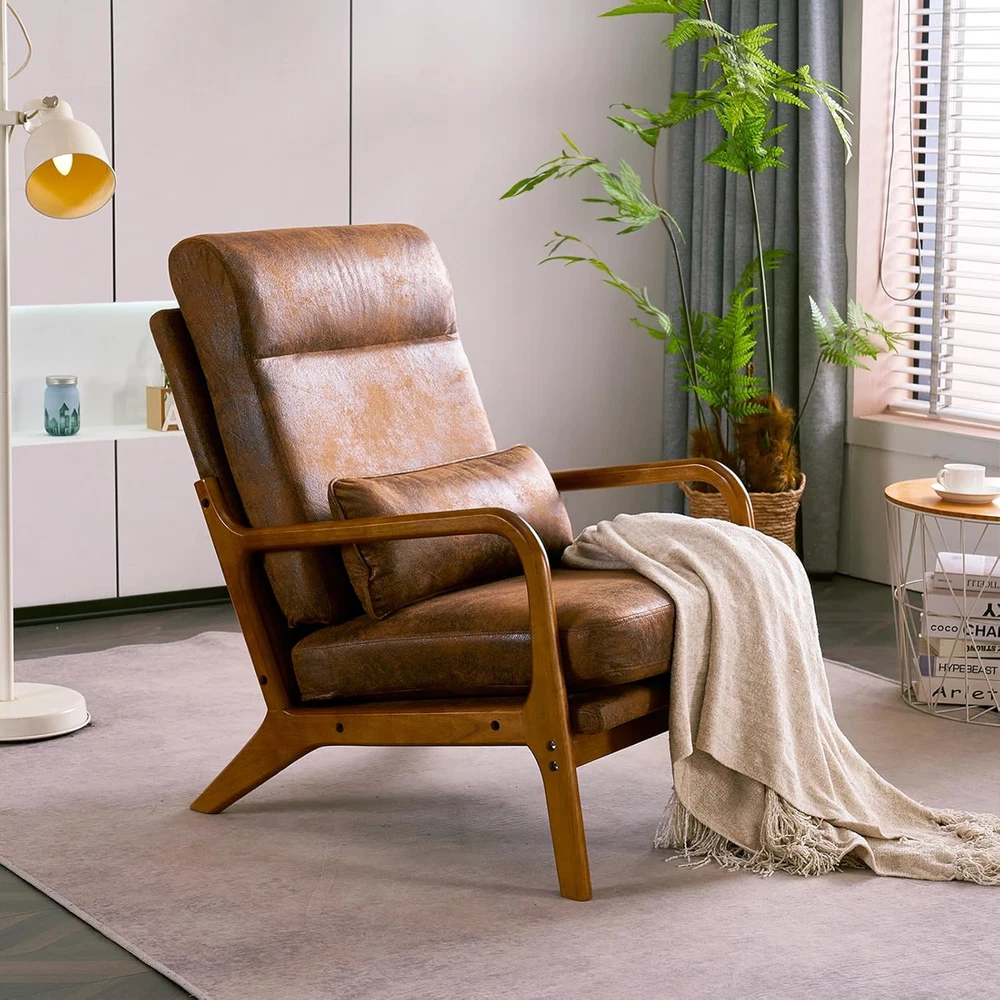 Mid-Century Modern Accent Armchair with Plush Cushion for Reading Nook