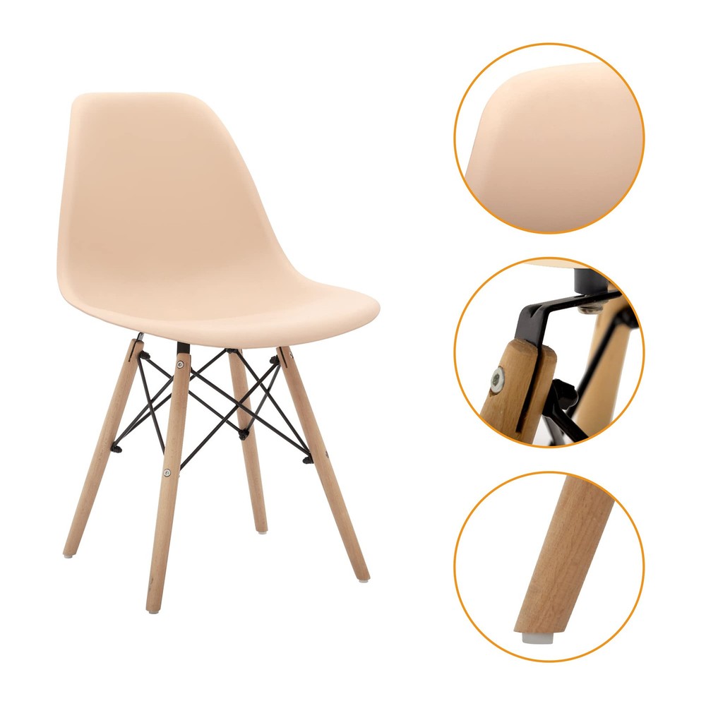 This chair is a fantastic blend of style and comfort! The ergonomic curved seat provides excellent back support, making it great for long meals or work sessions. The sturdy wood legs and black supports give it a sleek, modern look while ensuring stability. It fits perfectly in any space—dining room, office, or even a cozy living room setup. The design is simple yet elegant, adding a touch of sophistication wherever you place it. Highly recommend for both home and office use!