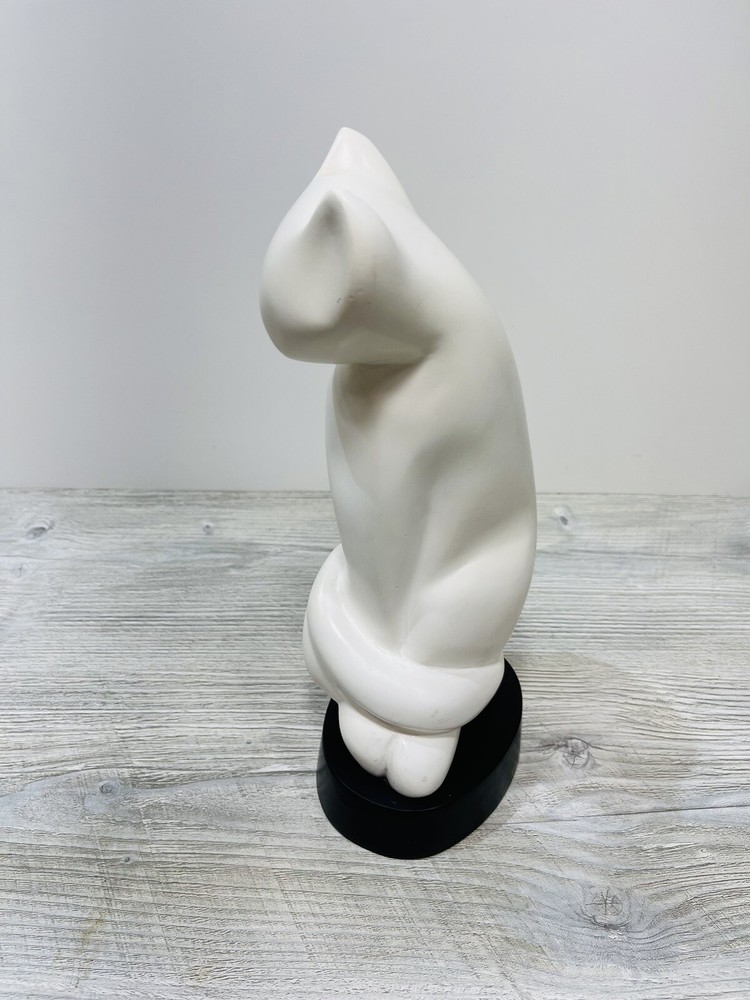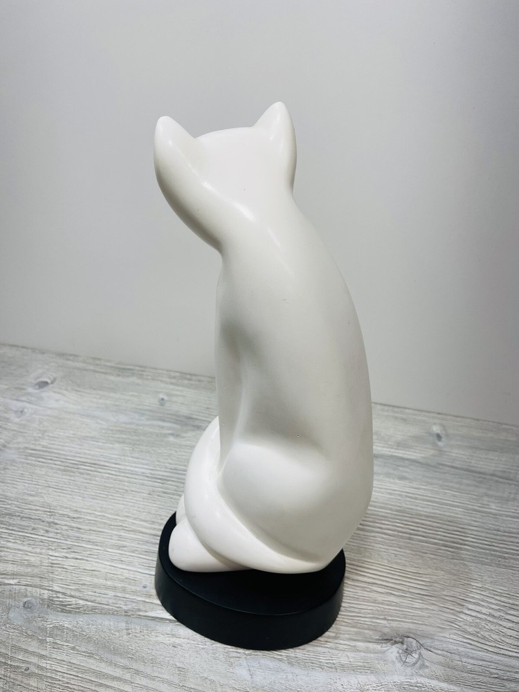 The li Ching resin cat sculpture is in good condition with no chips or cracks. It does have some spots and markings. It measure 12 and three-quarter inches high by 5 1/2 inches wide and 4 inches long .