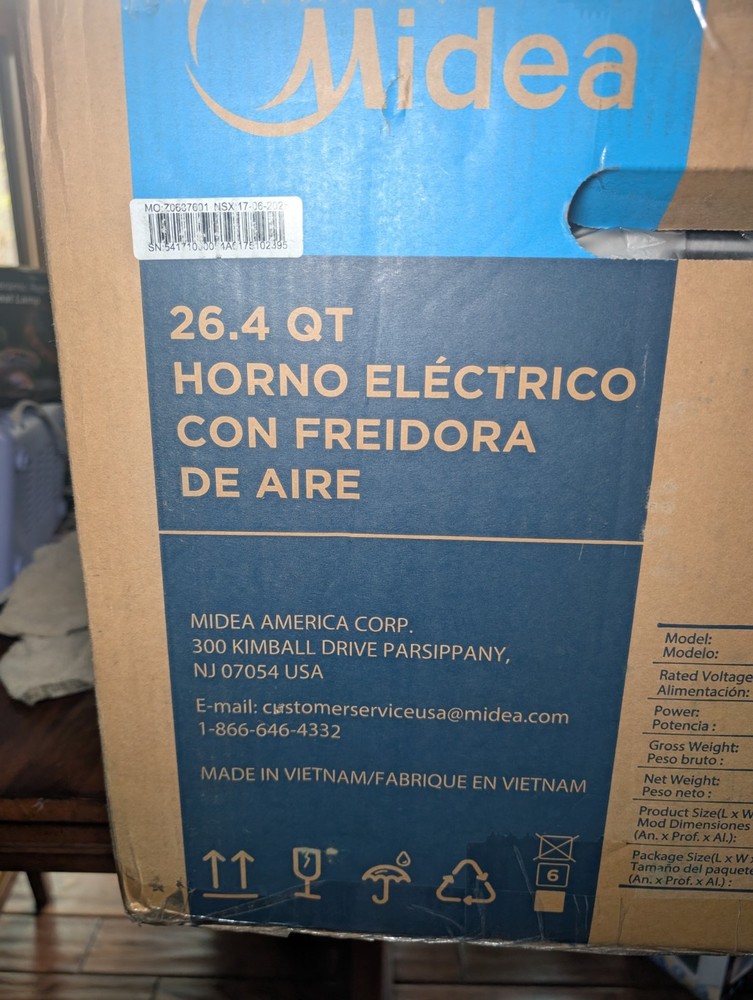 A big countertop beast for someone who wants air fryer convenience without giving up actual oven space. Midea Flexify French Door Air Fryer Oven, 26.4QT, 10-in-1, stainless steel, sold exactly as shown. Great for air frying, baking, roasting, toasting, reheating, dehydrating, and more in one extra-large countertop unit. This is the French door style model with the larger family-size capacity, making it a nice option for anyone who wants more cooking space than a standard little air fryer basket can offer. Good setup for everyday use, meal prep, family dinners, or replacing multiple small kitchen appliances with one unit. Details: - Brand: Midea - Flexify French Door Air Fryer Oven - 26.4QT capacity - 10-in-1 cooking functions - Stainless steel finish - Countertop oven / air fryer combo - Exact item shown in photos Condition: Open box never used, never taken out of box. Boxed unit sold exactly as shown. Outer packaging shows shelf, storage, and handling wear. Please review all photos carefully so you know exactly what you’re receiving. I recommend describing it as new open box only if you have verified contents and condition; otherwise list it based on the exact condition you have confirmed. I do my best to provide clear photos, accurate descriptions, careful packaging, and fast shipping so you know exactly what you’re getting. I take pride in making sure every buyer has a smooth experience from start to finish. Reasonable offers are always welcome.