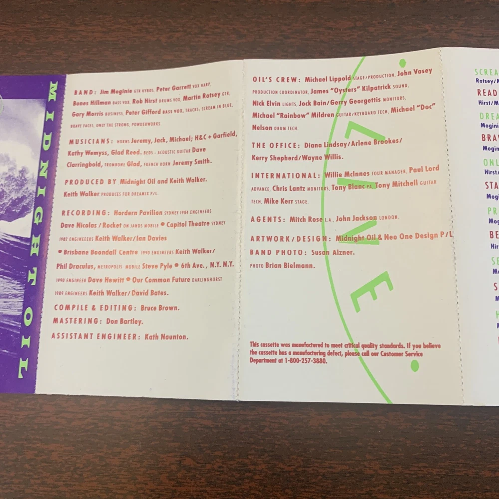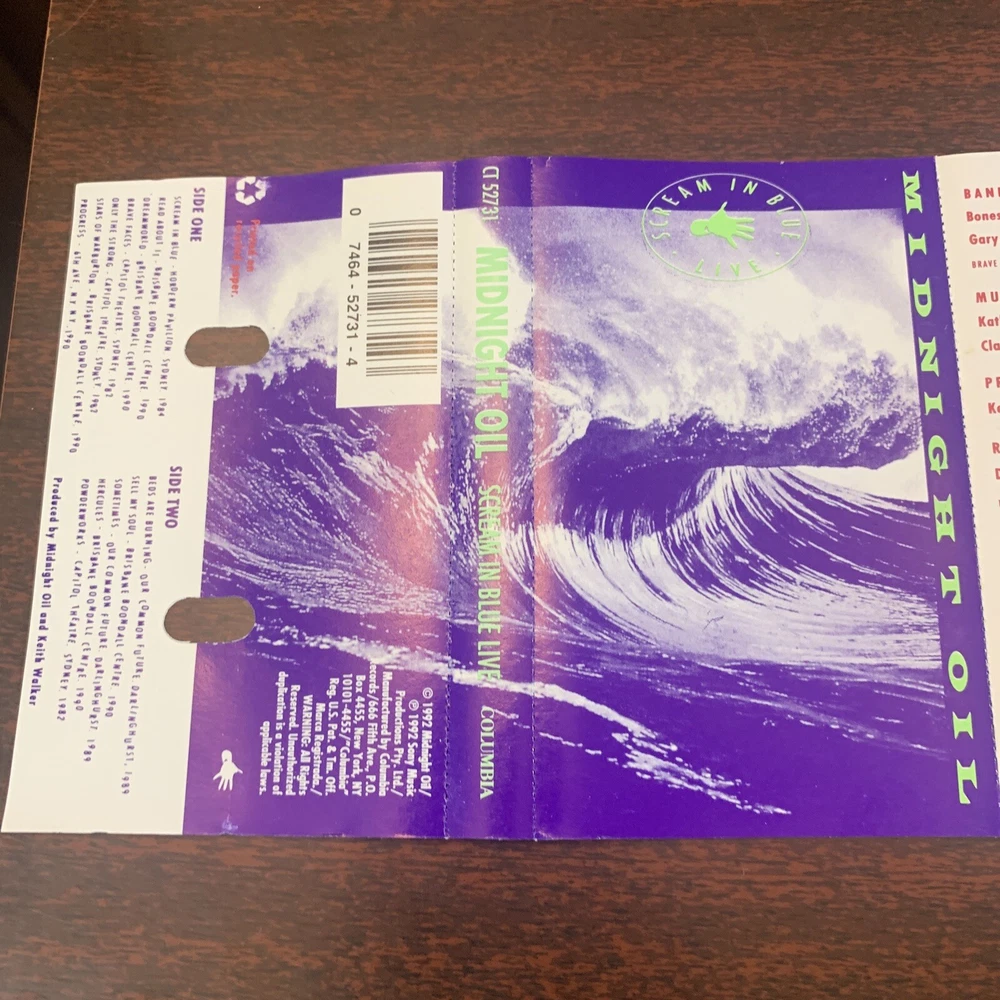 Midnight Oil - Scream in Blue Live (cassette tape, 1992) Sony Music, Australian, CT52731 Columbia Records. The purple cassette is really cool.