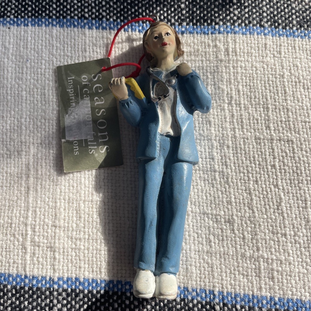The product is a Midwest-CBK nurse ornament featuring a brunette nurse in a brown color. It is made of resin and designed as a hanging ornament with a size of 4.5 inches. The ornament is from the year 2006 and is part of a set that includes just one item. It is themed around nursing/medical and would be suitable for all occasions, making it a thoughtful gift or decoration for anyone in the healthcare field.