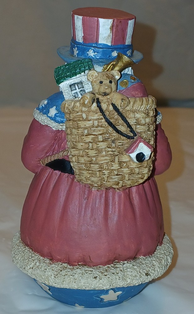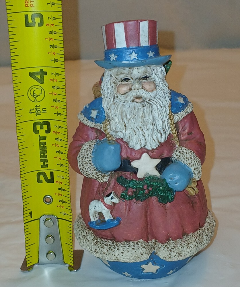 This item is pre-owned, vintage, with no chips, cracks, or damages. Has normal signs of age. I think he looks like a creepy de monic Santa, dressed as Uncle Sam in a patriotic fourth of July get up. His eyes appear black, which is why I say creepy!!! You receive the same Figurine pictured. Please look over all the photos. Tape measure is shown for size reference. Carefully packed and shipped by the next business day.