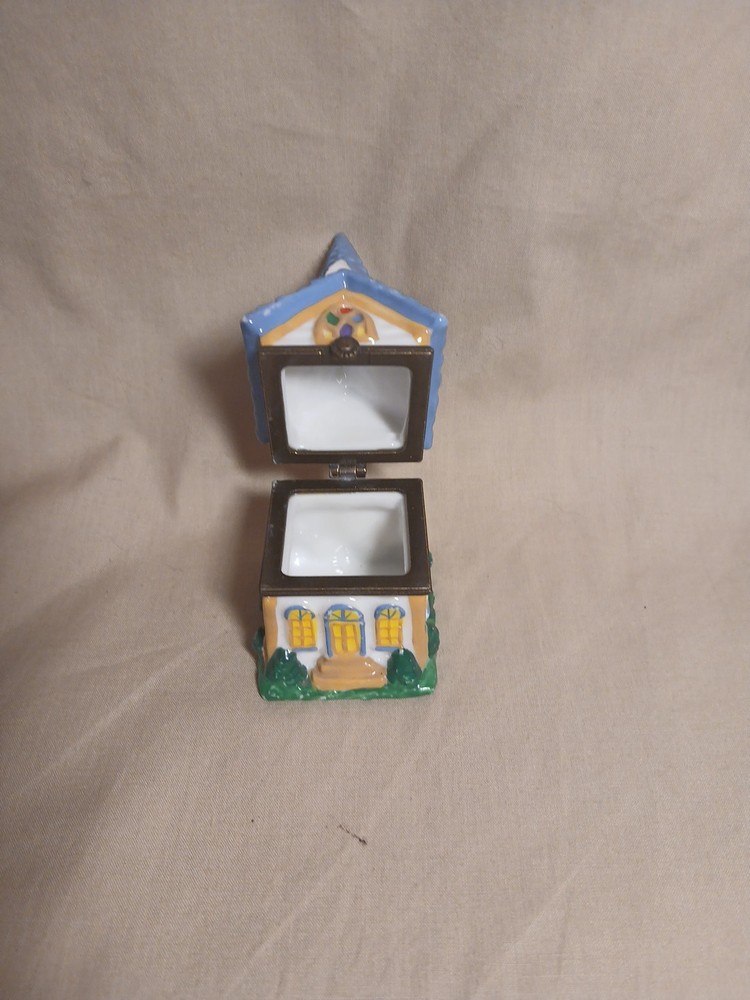Customized: No Size: Small Time Period Manufactured: 1990-1999 Color: Multicolor Subject: Church Closure Type: Hinge Material: Porcelain Finish: Glazed Department: Adults Era: Late 20th Century (1970-1999) Type: Trinket Box Features: Hinged opening Engraved: No Room: Any Room Care Instructions: Clean with Damp Cloth Country of Origin: China Theme: Religious Number in Pack: 1 Occasion: Christening, Baptism Original/Reproduction: Original Brand: Midwest of Cannon Falls