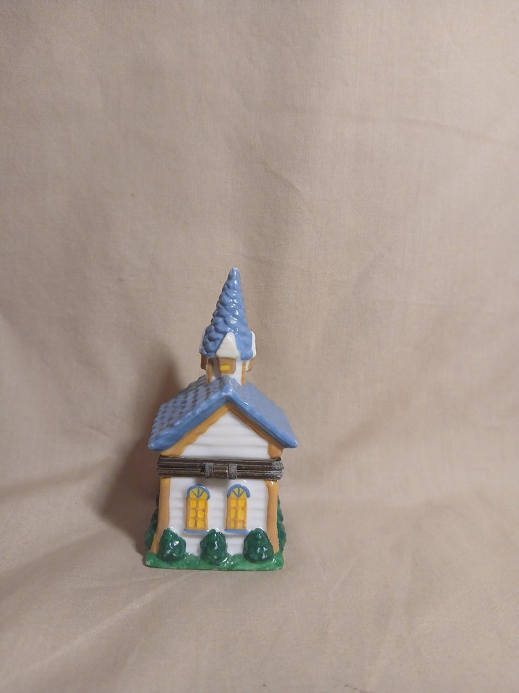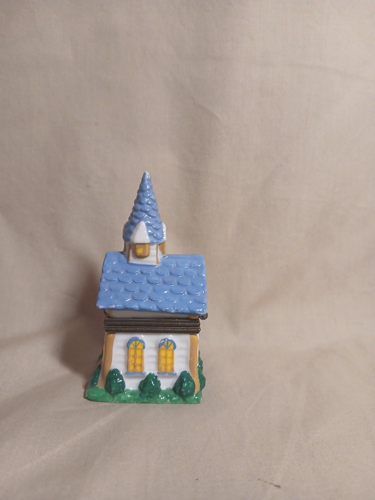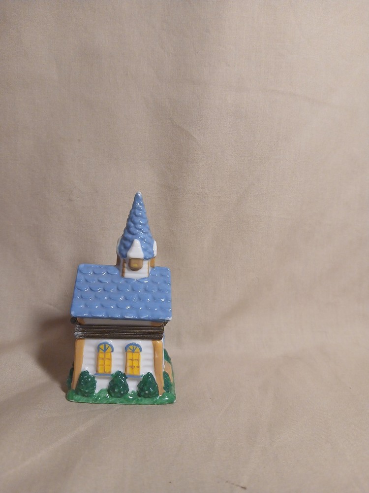 Midwest of Cannon Falls Church Porcelain Hinged Trinket Box 3x1.75x1.75” Blue