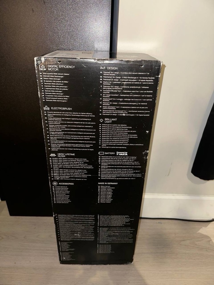 FREE EXPRESS SHIPPING WORLDWIDE The Miele Triflex HX2 Cat and Dog Cordless Bagless Stick Vacuum is a top-of-the-line vacuum cleaner designed for pet owners. With a powerful 35W motor and a runtime of up to 60 minutes, this vacuum offers pet hair removal capabilities and is suitable for both carpets and hard floors. The HEPA filter ensures clean air while the included accessories like the extension wand, floor brush, and upholstery brush provide versatility in cleaning different surfaces. This sleek black vacuum with a compact and ergonomic design is perfect for pet owners looking for a convenient and efficient cleaning solution.