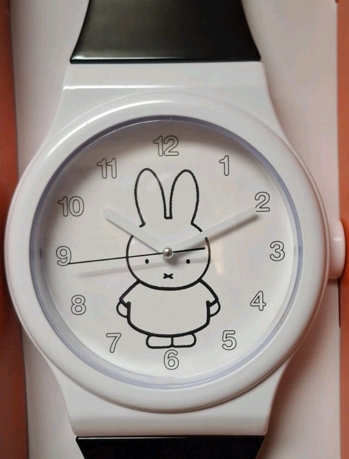Shape: Irregular Type: wristwatch-style wall clock Item Weight: 8.0000 Color: White Era: 21st Century (2000-Now) Display Type: Analog Finish: White Frame Material: Plastic Item Height: 36 in Brand: Miffy Character Family: Miffy & Friends Chime Sequence: n/a Room: Bedroom, Dining Room, Hallway, Home Office/Study, Kitchen, Living Room gtin13: Does not apply Manufacturer Warranty: NO Material: Plastic Model: Miffy Usako-Chan Movement: Quartz (Battery Powered) UPC: Does not apply Style: Charming & Whimsical Features: 12-Hour Display, Battery-Operated MPN: 213216 Power Source: Battery Powered Theme: Animation, Art, Cartoons & Characters, Miffy & Friends Character: Miffy